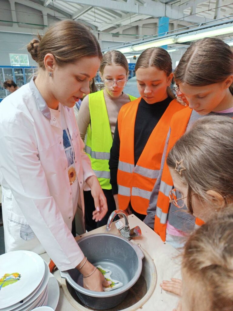 Интересно было и на Добрушском фарфоровом заводе. Житковчане узнали, что каждое изделие имеет оригинальный дизайн и высокую прочность, изготавливается из особых сортов редкой белой глины. А ещё познакомились с производством посуды, историей и новинками предприятия.