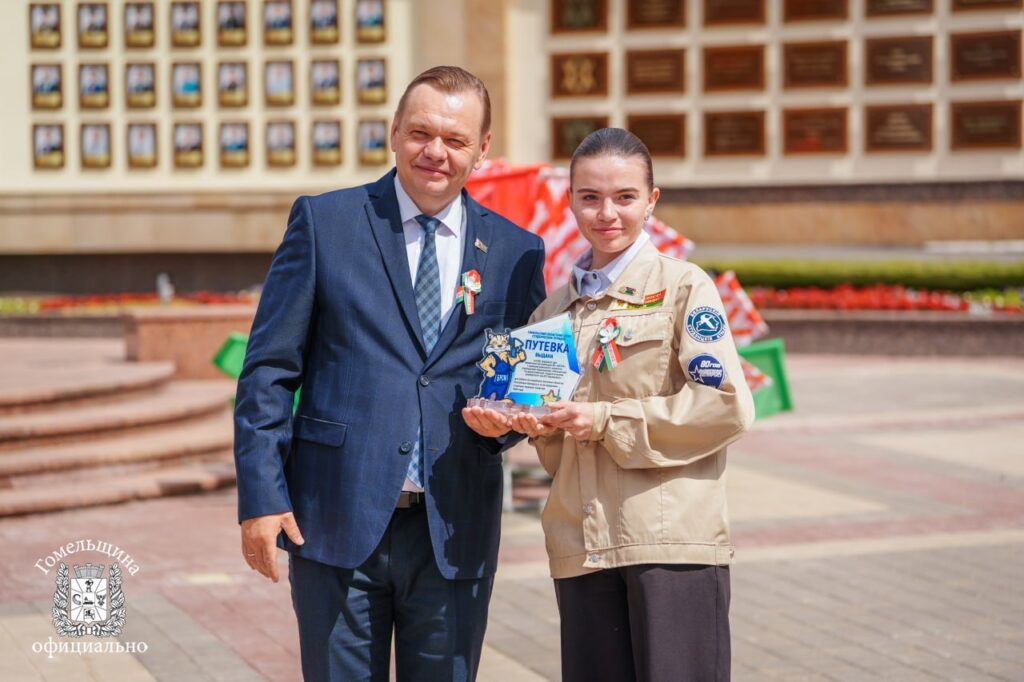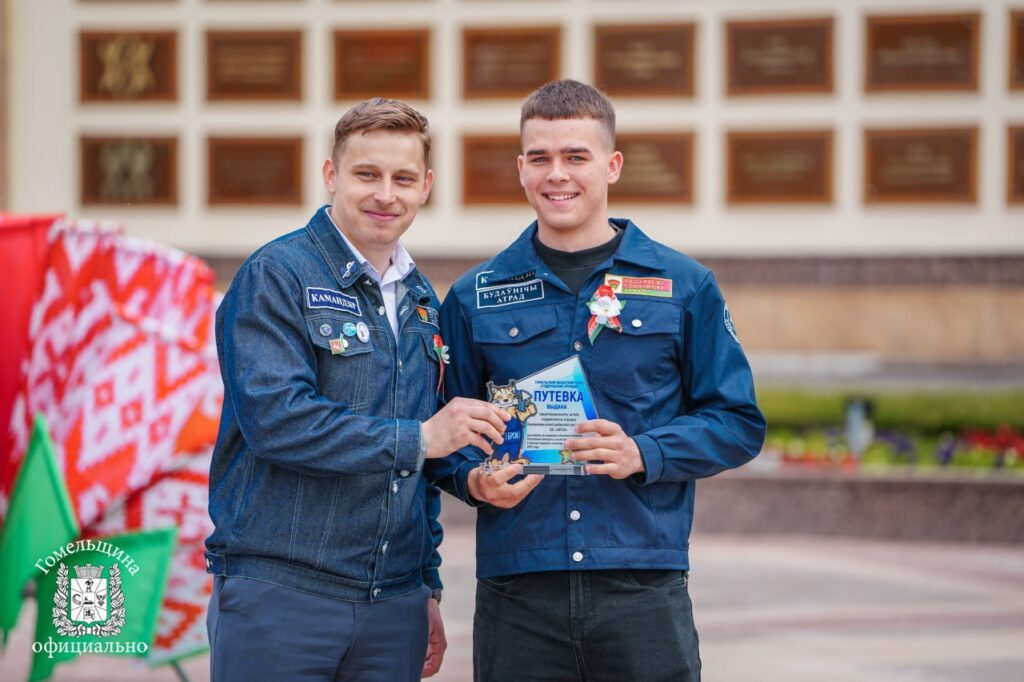 День для молодежи начался с возложения цветов к памятнику гомельским ополченцам. Затем на площади Государственного флага прошла церемония вручения путевок в трудовой семестр.