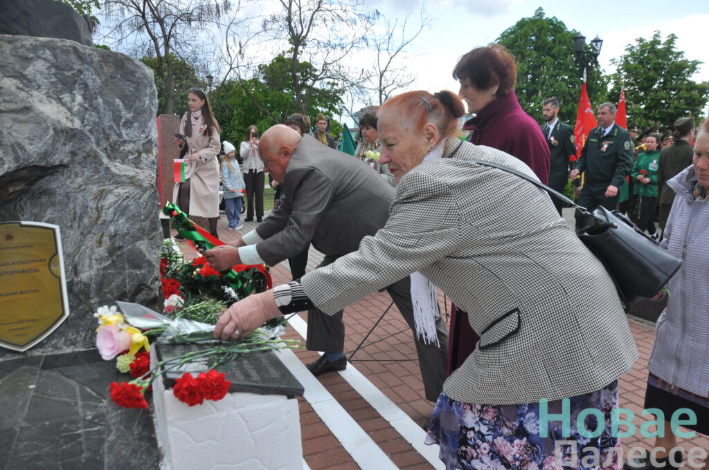 Участники торжественного митинга в минуту молчания склонили головы в память о героях-освободителях, мужественно сражавшихся за свободу Родины, возложили цветы и венки к памятнику погибшим воинам Красной Армии и партизанам