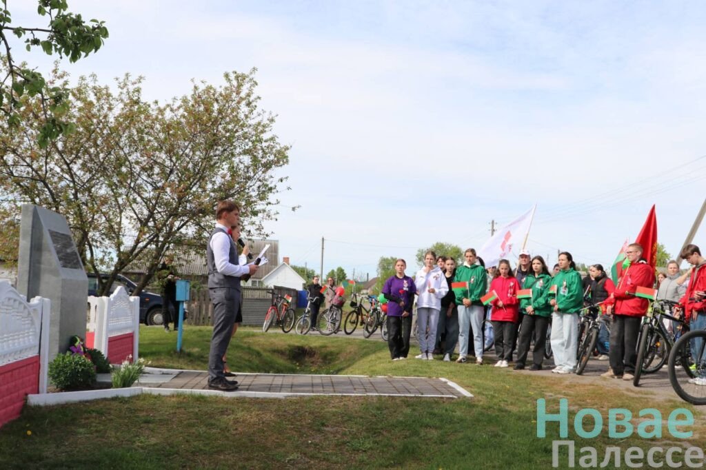 После мини-митинга с участием военного комиссара района Олега Бреева велосипедисты возложили цветы к обелиску жертвам фашизма на городском кладбище и памятному знаку на месте лагеря военнопленных на улице Первомайской.