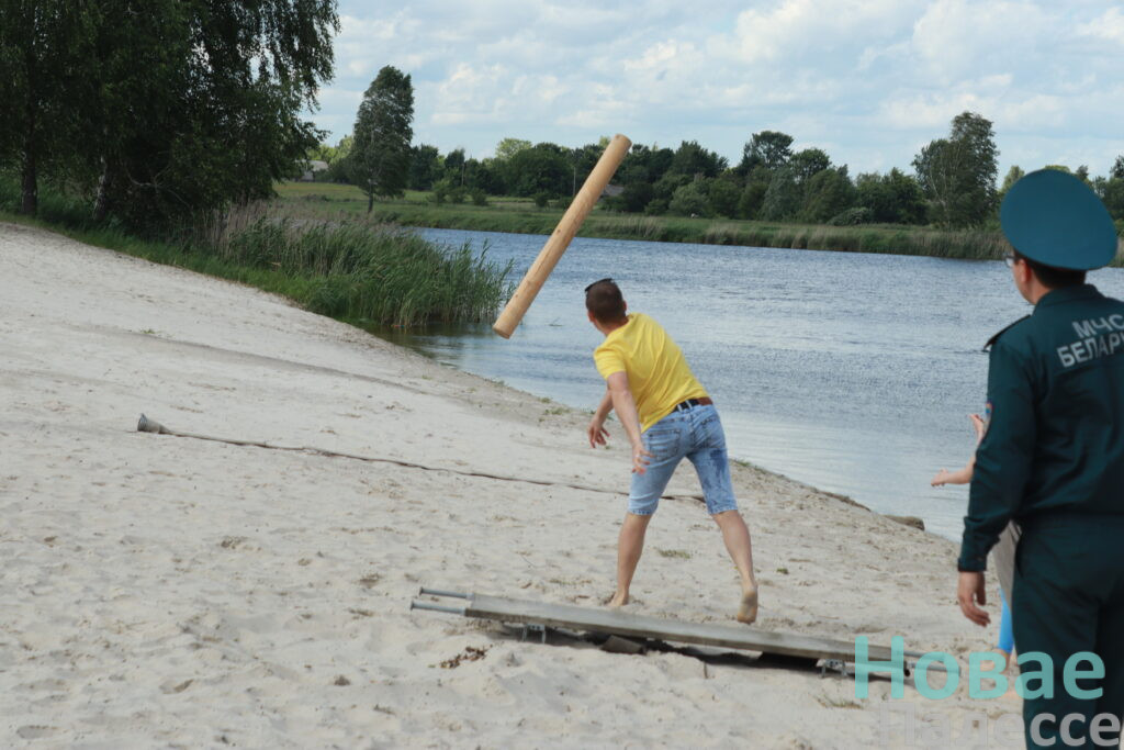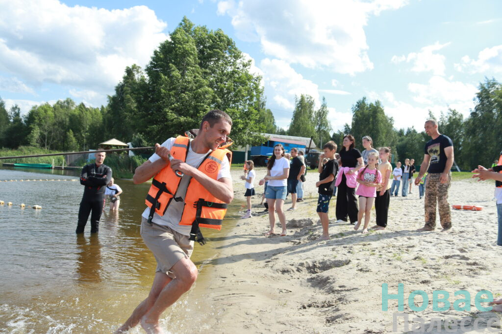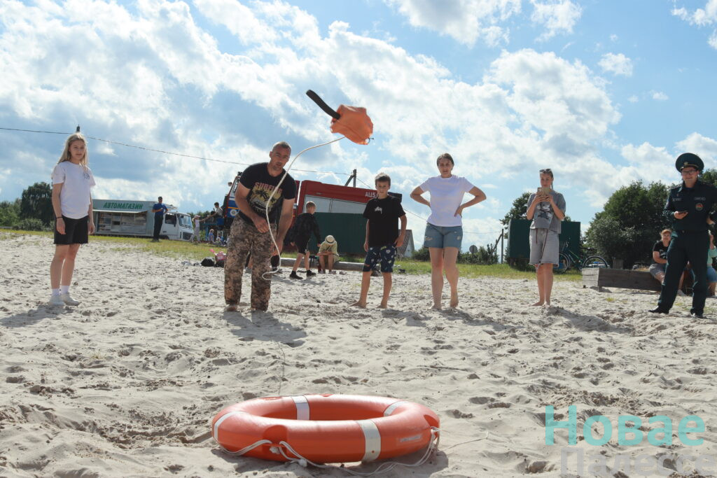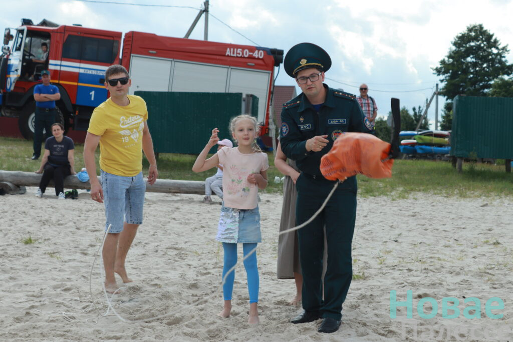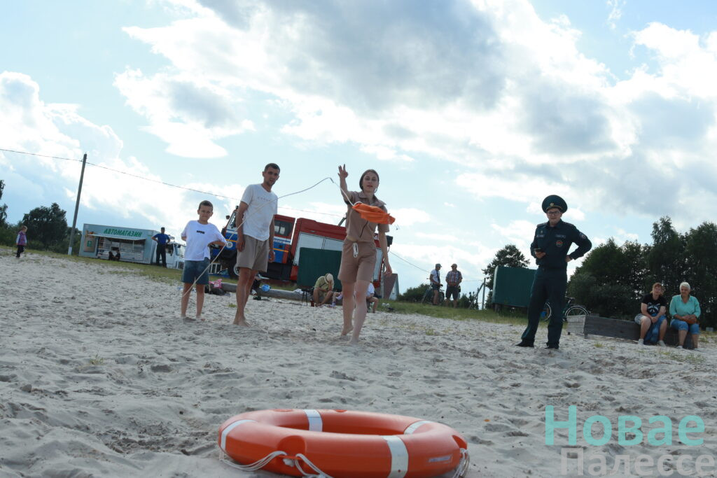 Особую атмосферу создали водные испытания. Соревнующиеся бросали спасательный линь и проплывали на спасательной доске до определенной точки.