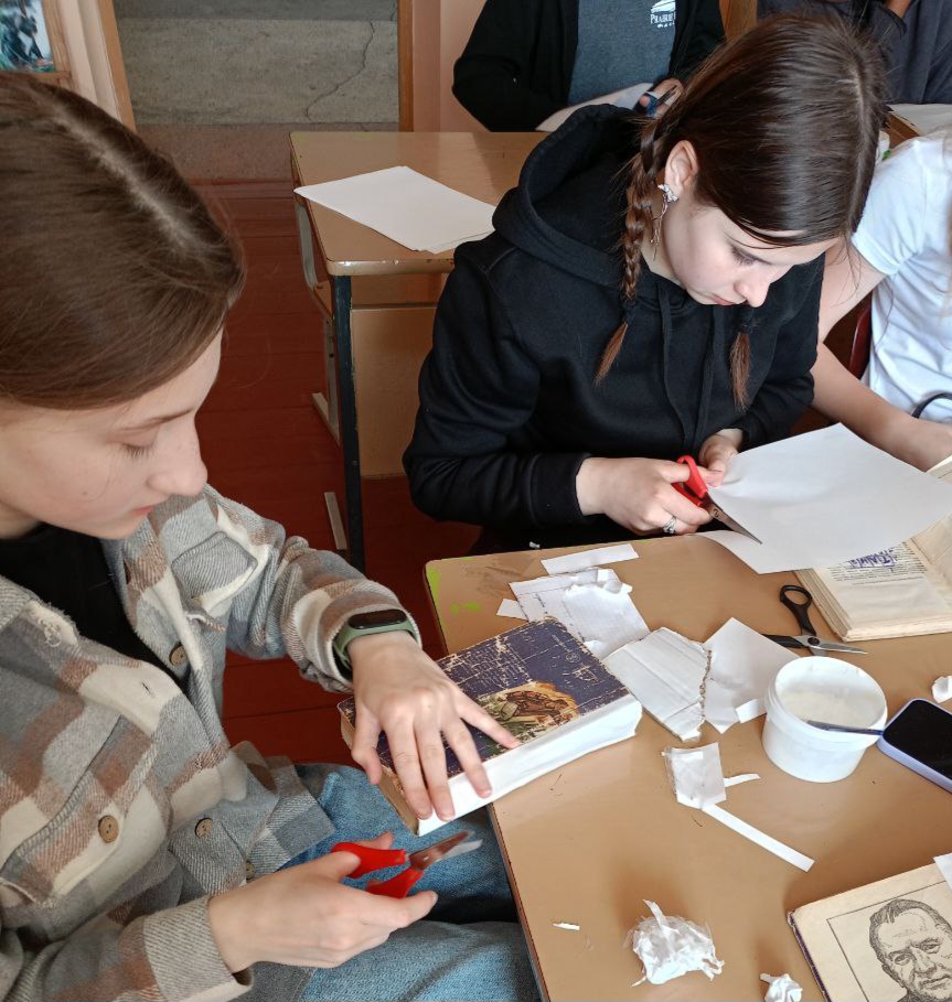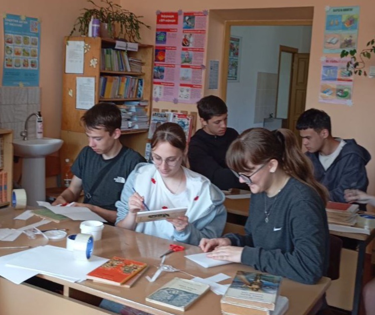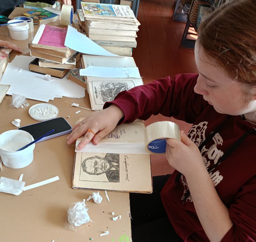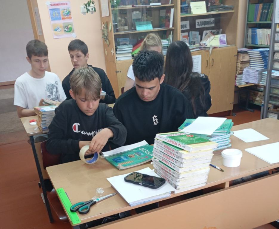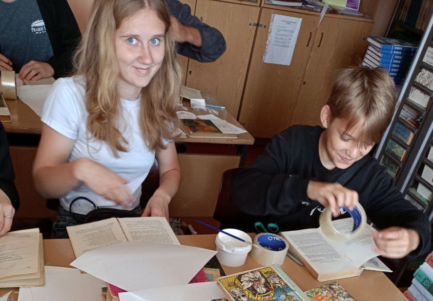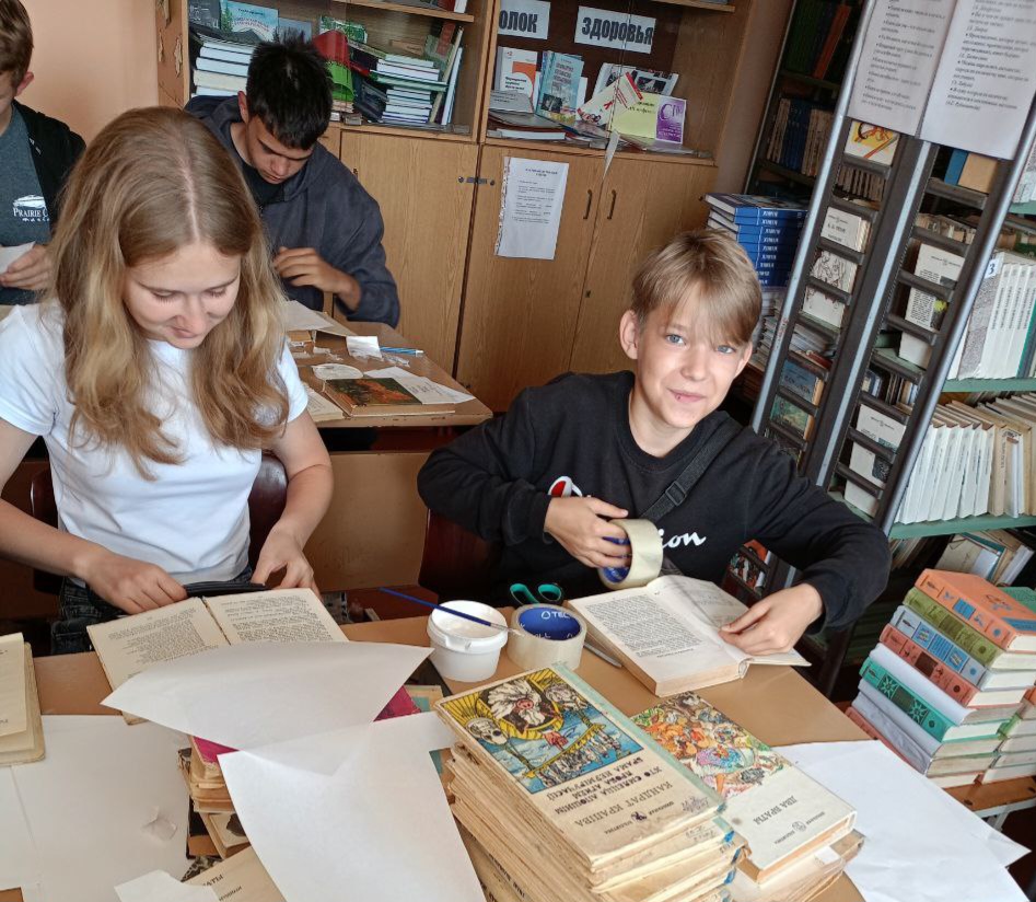 В школьной библиотеке тоже многолюдно. Процессом здесь руководит библиотекарь Татьяна Смолянец. Ребята приводят в порядок книги, тщательно осматривая страницы и обложки, устраняют дефекты. Всего предстоит отремонтировать полторы тысячи экземпляров.