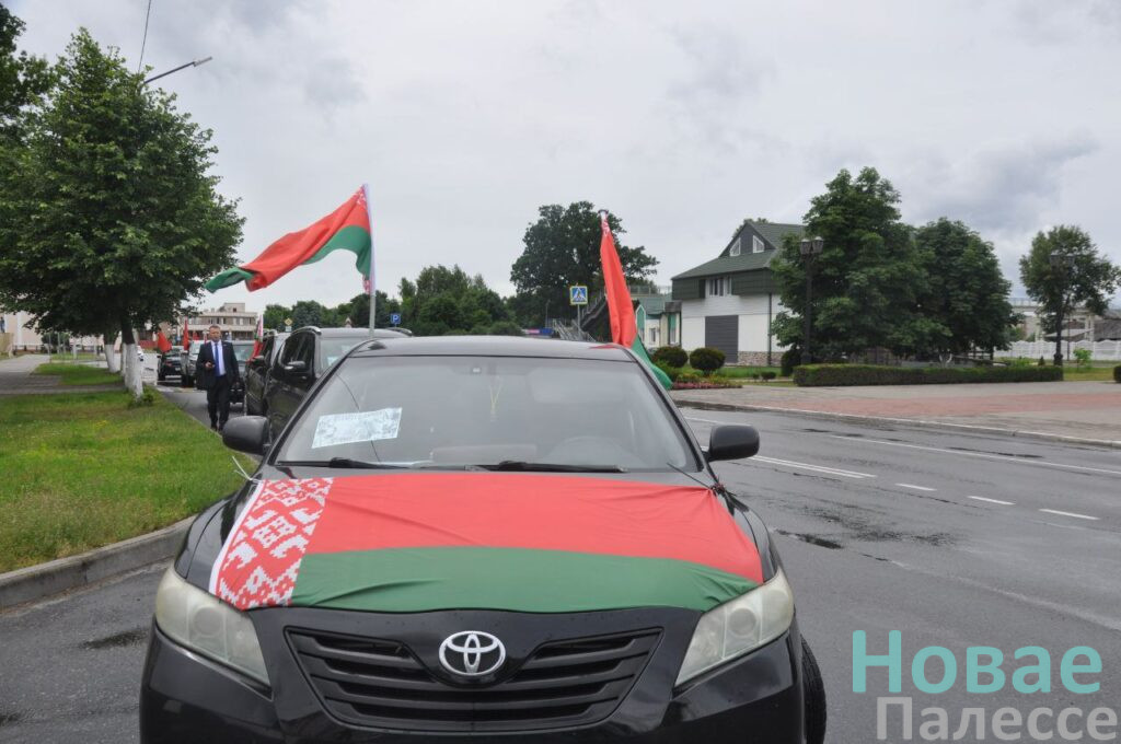 Десятки автомобилей с национальной символикой собрались у братской могилы советских воинов и партизан, чтобы почтить память погибших в годы Великой Отечественной войны — возложили цветы к братской могиле и почтили память погибших в годы Великой Отечественной войны минутой молчания.