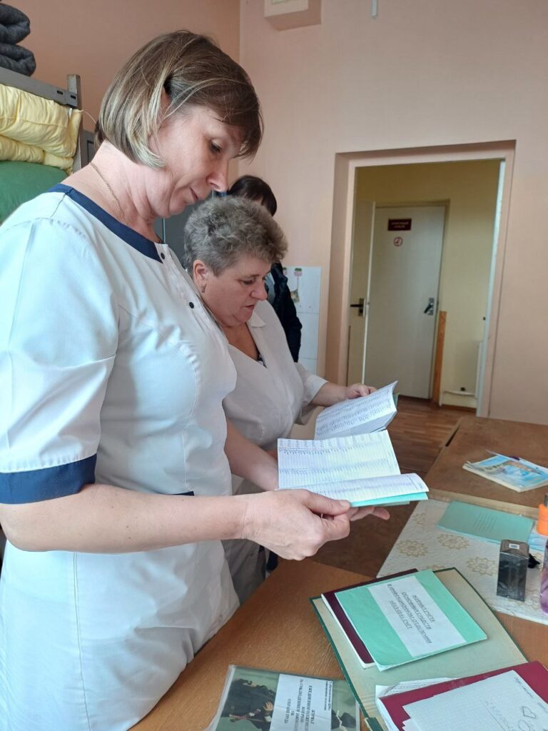 «Обеспечение работников СИЗ: действия нанимателя. Почему сегодня СИЗ носят не везде?› монигоринговая группа в составе Леонида Жоголя, председателя профсоюзной организации, Елены Кудач, инженера по охране труда, Полины Акунец, главной медицинской сестры провела целевую проверку в структурных подразделеннях центральной районной больницы.
