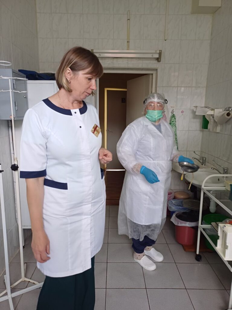 В хирургическом отделении комиссия наблюдала за применением СИЗ.
