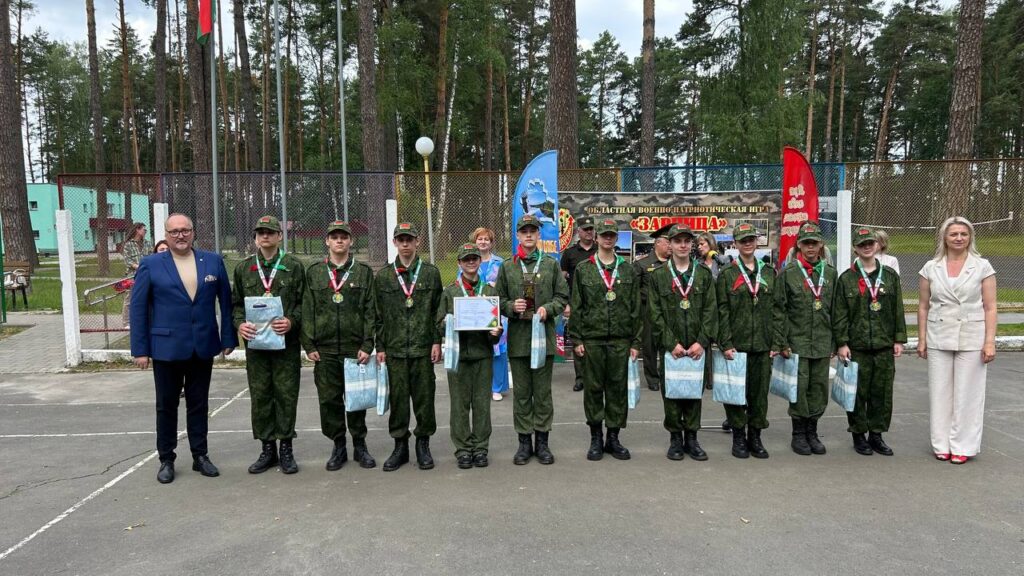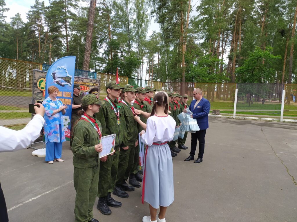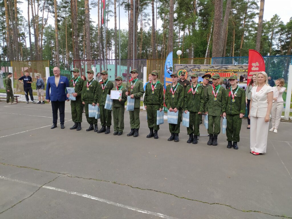 В течение нескольких дней под Гомелем в разных конкурсах состязались посланцы 10 регионов. Наши ребята из отряда «Патриот» под руководством Сергея Чернявского, заместителя директора по военно-патриотическому воспитанию, заняли второе место, уступив всего лишь один балл победителям из Центрального района областного центра.