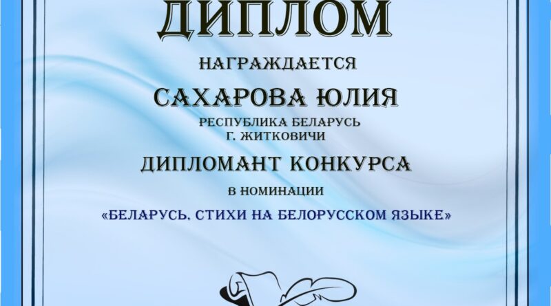 Поздравляем с творческим достижением житковчанку Юлию Сахарову и школьника из д. Лагвощи Алексея Таболича! Наши земляки стали дипломантами межрегионального литературного