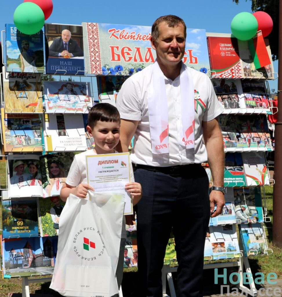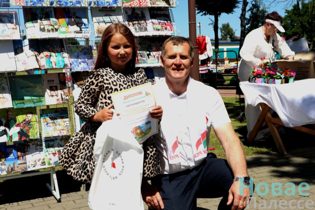 Председатель Житковичской районной организации Республиканского Общественного Объединения «Белая Русь» Сергей Агиевич, он же председатель жюри, вручил ребятам дипломы и подарки на главной локации торжества – в парке имени Николая Гомолко.