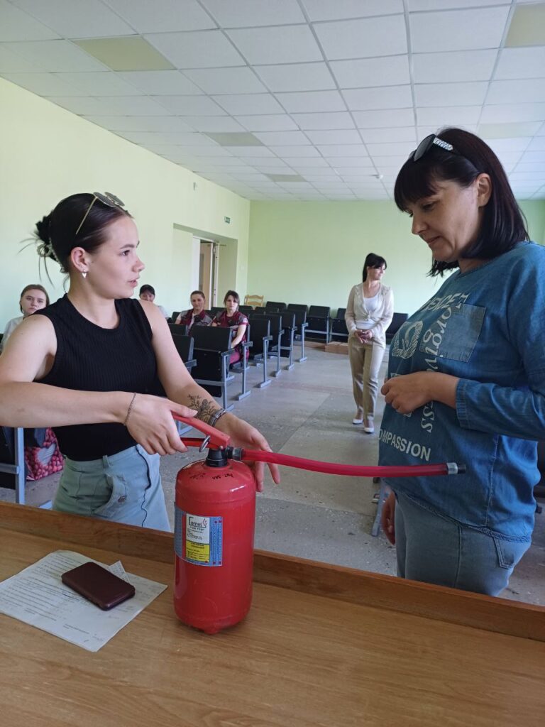 Организаторами и ведущими мероприятия выступили председатель профсоюзного комитета учреждения Леонид Жоголь и инженер по охране труда Елена Кудач. Они провели для персонала больницы комплексное обучение по критически важным аспектам безопасности: действия при пожаре, работа с огнетушителем, первая помощь при отравлении продуктами горения.