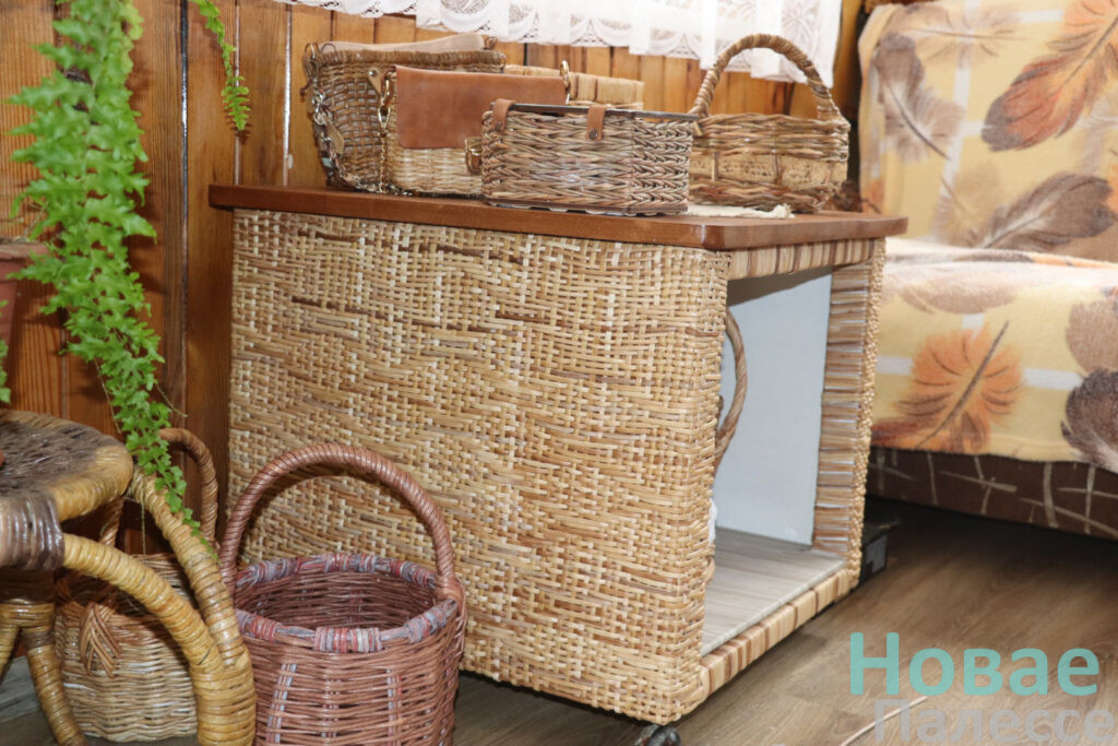 Встречая в прихожей уютного дома, скромно демонстрирует свои последние изделия – бесподобное приспособление для овощей, корзины для пикника (их уже зарезервировала одна из дочерей), пасхальные, подарочная шкатулка для денег, изящные сумочки для внучек-подростков. Из творений покрупнее – оплетённые столик и комод. Причём в последнем случае пришлось содрать старое покрытие и окаймить его новым. Оригинально и красиво получилось.