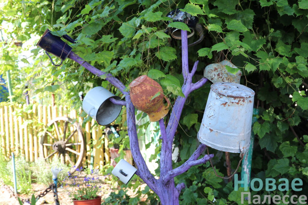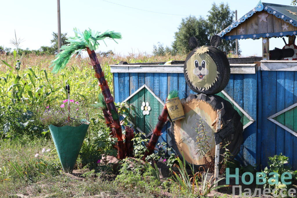 Не адна сядзіба ў Грэбені зіхаціць кветкавай вясёлкаю. Але ж самая прыкметная хата вылучаецца яшчэ і мноствам цікавых скульптур. Пра захапленне Аляксандра Ханені мы ўжо расказвалі на сваіх старонках. Бацькоўскую хату, ператварыўшы ў дачу, токар ААТ «Жыткавічыхімсервіс» лічыць тым самым месцам сілы. З розных падручных матэрыялаў мужчына стварыў на падворку цэлы казачны музей: пчаліная хатка і баба Яга, вучоныя каты і міні-сажалка з рыбкамі. Прысесці запрашаюць шырокія арэлі і лаўка шчасця. На дзвярах у хату малюнак бабусі, побач кнопка ў мышынай пастцы і гумарыстычны надпіс «Нажми и тебя услышат».