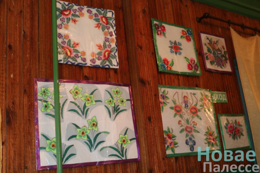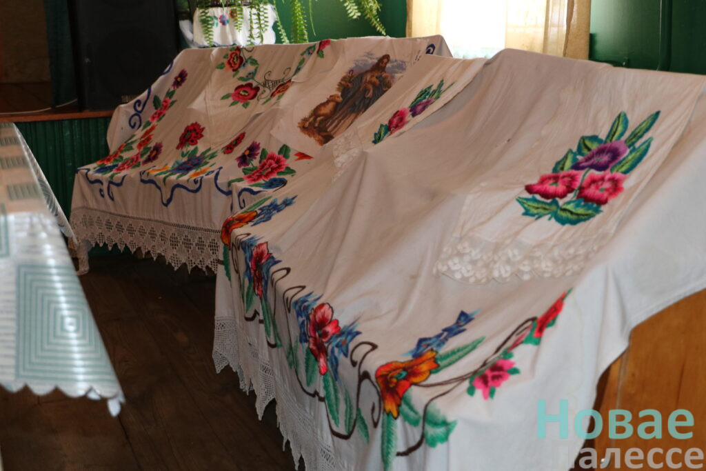 Пабывалі мы і на працоўным месцы Галіны Анатольеўны. Каля клуба яркая клумба. На сценах танцавальнай залы ў рамках вышытыя арнаменты. Так загадчыца захавала работы сваёй мамы, што ацалелі пасля пажару ў яе хаце. Наогул, кожная рэч тут нібы экспанат этнаграфічнага музея. Вясковы вайб і атмасфера настальгіі па тых часах, што не вярнуць…
