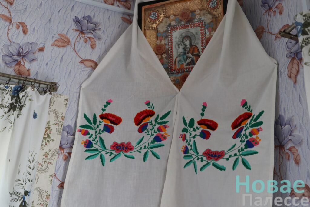 У хаце Стэфаніды Апанасаўны ідэальная чысціня. Сёлета ў дом правялі электраацяпленне. Дзеці паклапаціліся і пра камунальныя выгоды. За шклом савецкага серванта – настальгічны чайны сервіз і мноства сямейных фотакартак. Над ім вышытая ікона ў такім жа рушніку. Сучасны ЖК-экран тэлевізара прыкрыты мілай сурвэткаю  На ложках тыя самыя посцілкі, якім няма зносу.