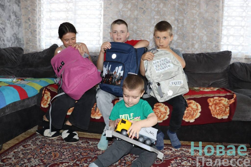 Другим адресом заботы и внимания стала ещё одна туровская семья Ковалец. Здесь подрастают три сыночка и лапочка дочка. Трое из детишек – школьники, самый младший ходит в детский сад. Детишек порадовали увесистыми рюкзаками, а для маленького члена семьи – автомобиль.