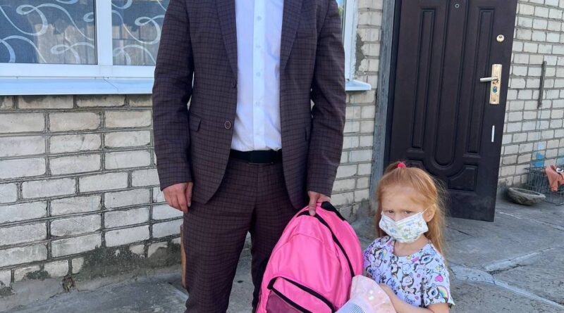 Первый в жизни школьный ранец Ангелине Кретыш из Черничей подарил депутат районного Совета депутатов и заместитель директора ЗАО «САТУР-1 г.