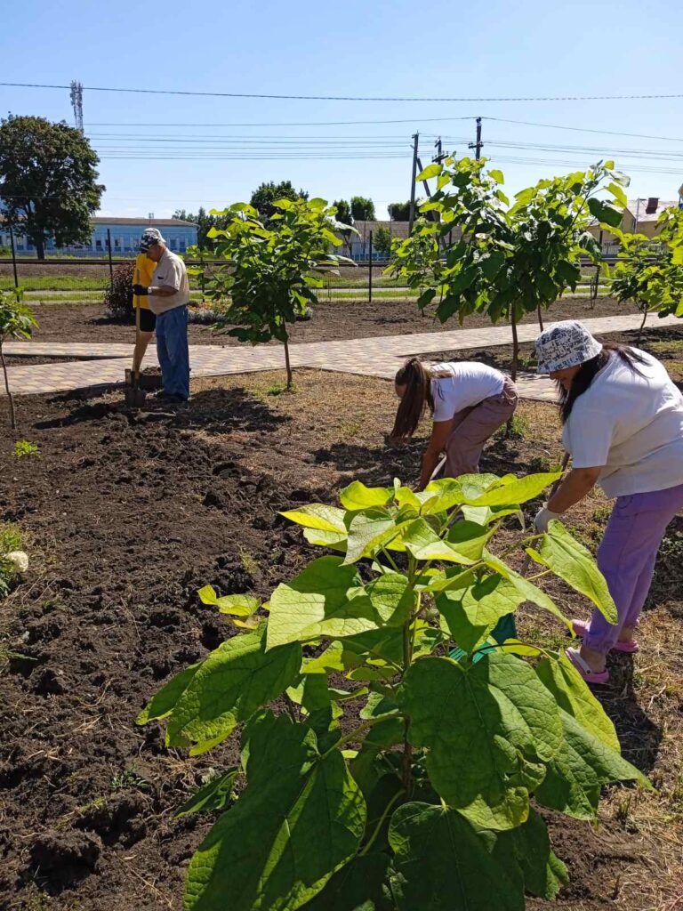 Коллективы УЗ «Центральная районная больница», Житковичского ТЦСОН, центр по обслуживанию бюджетной сферы, дружно вышли поработать в сквере Здоровье.