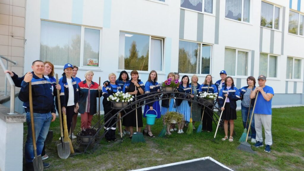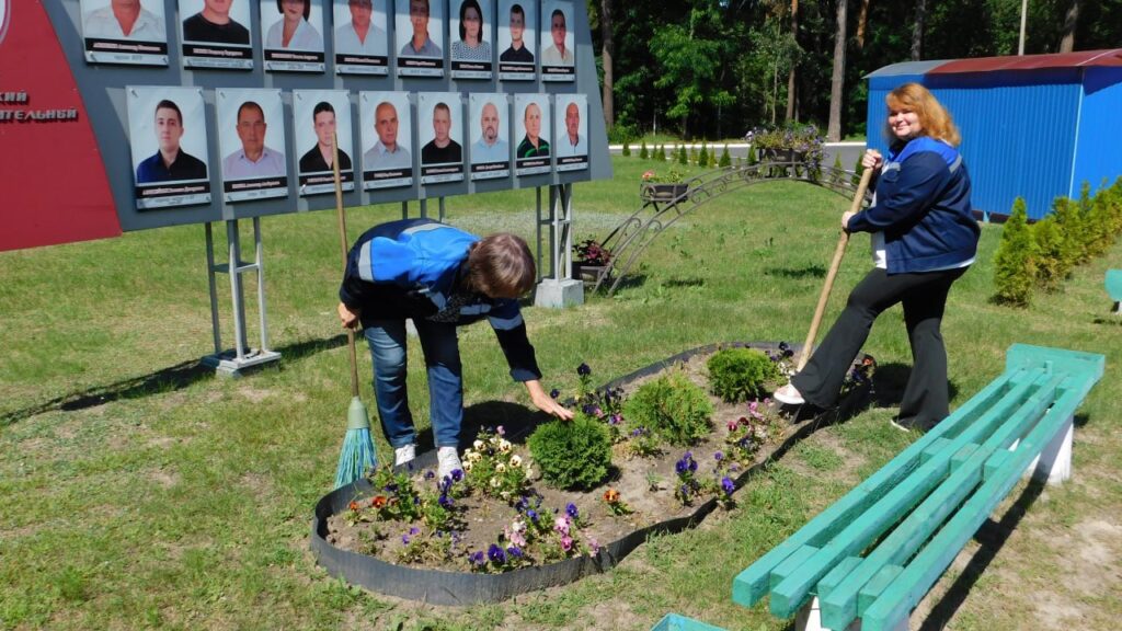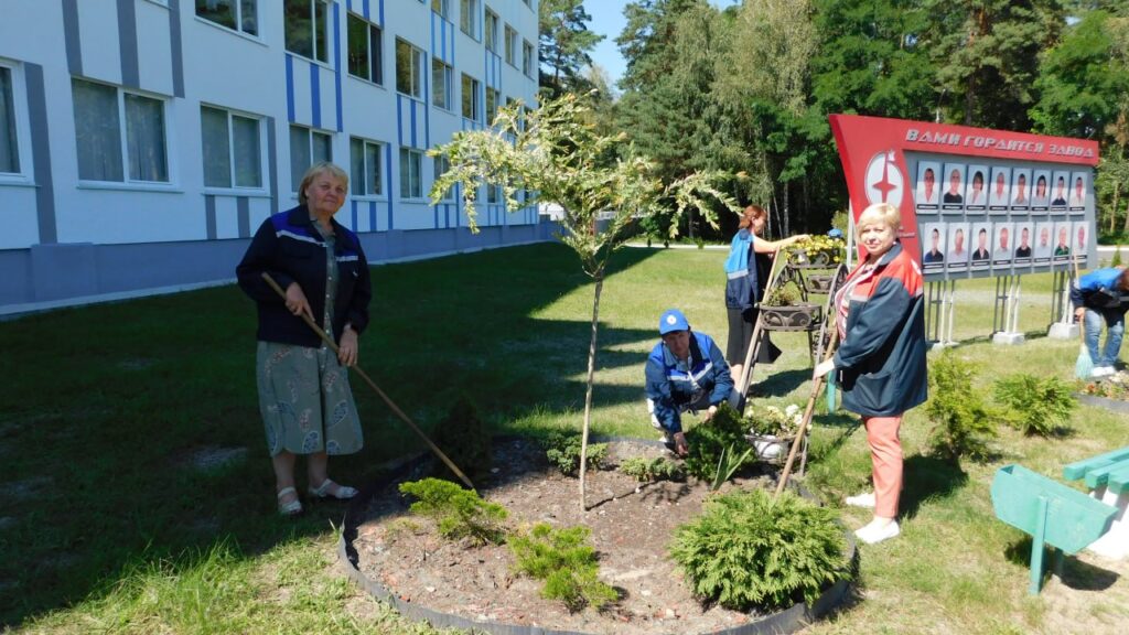Сотрудники Житковичского моторостроительного завода благоустраивают своё предприятие.