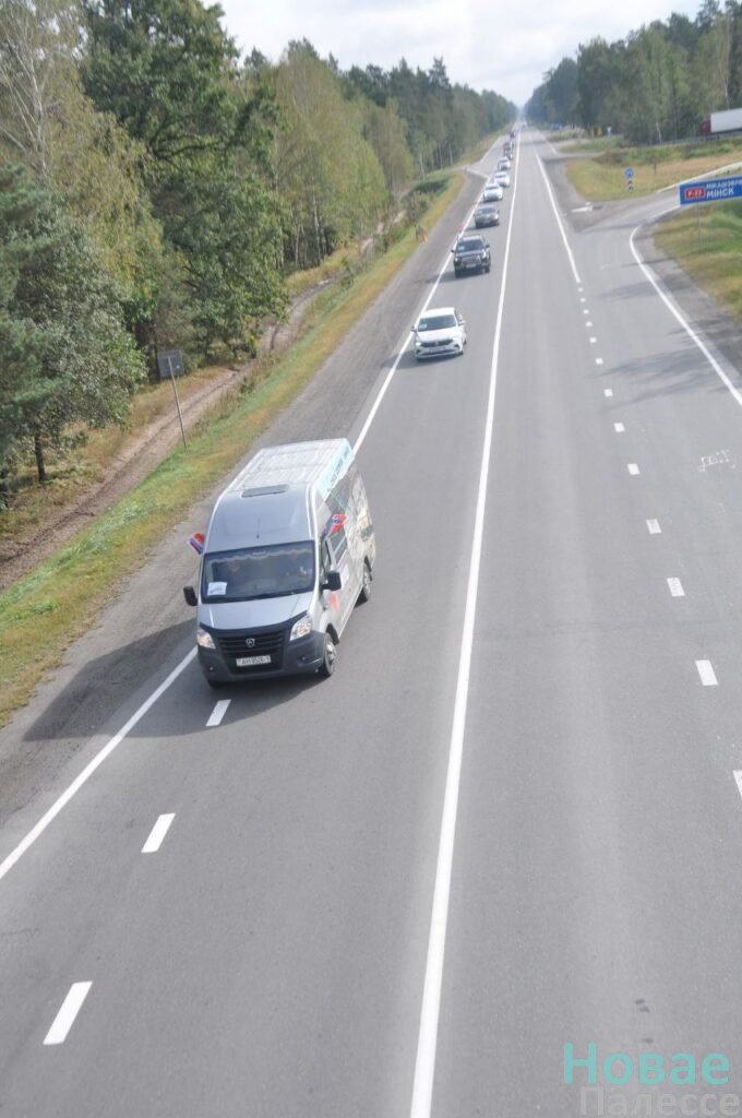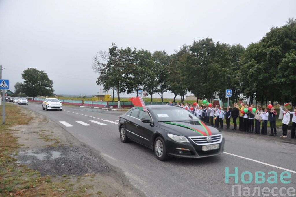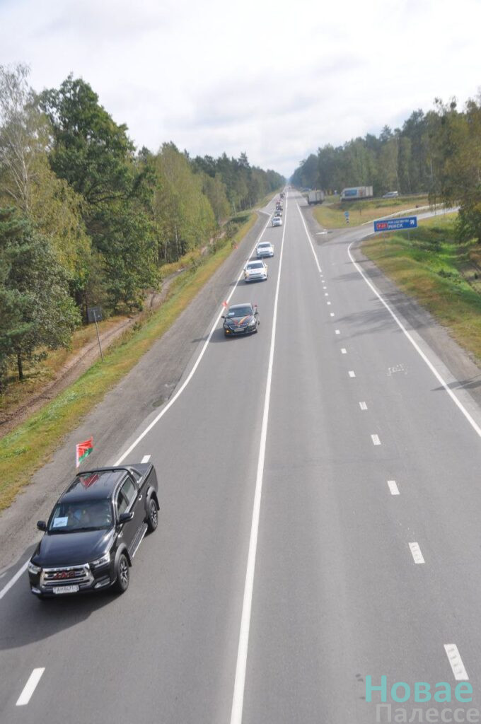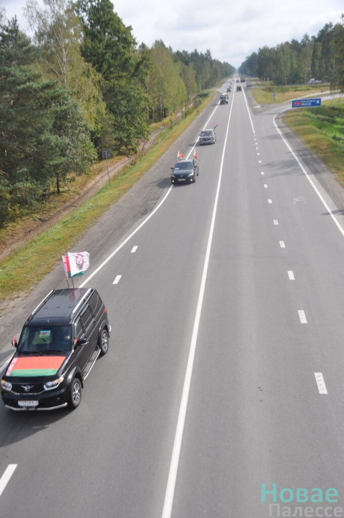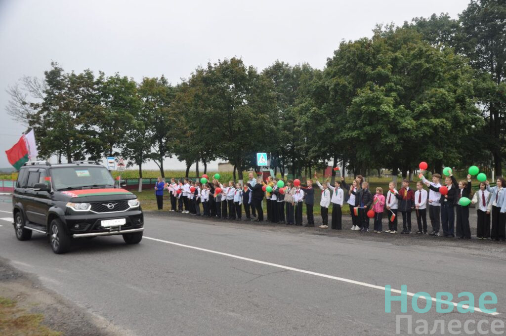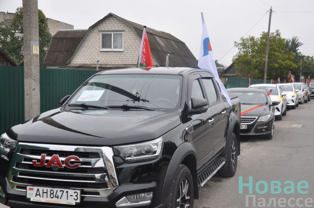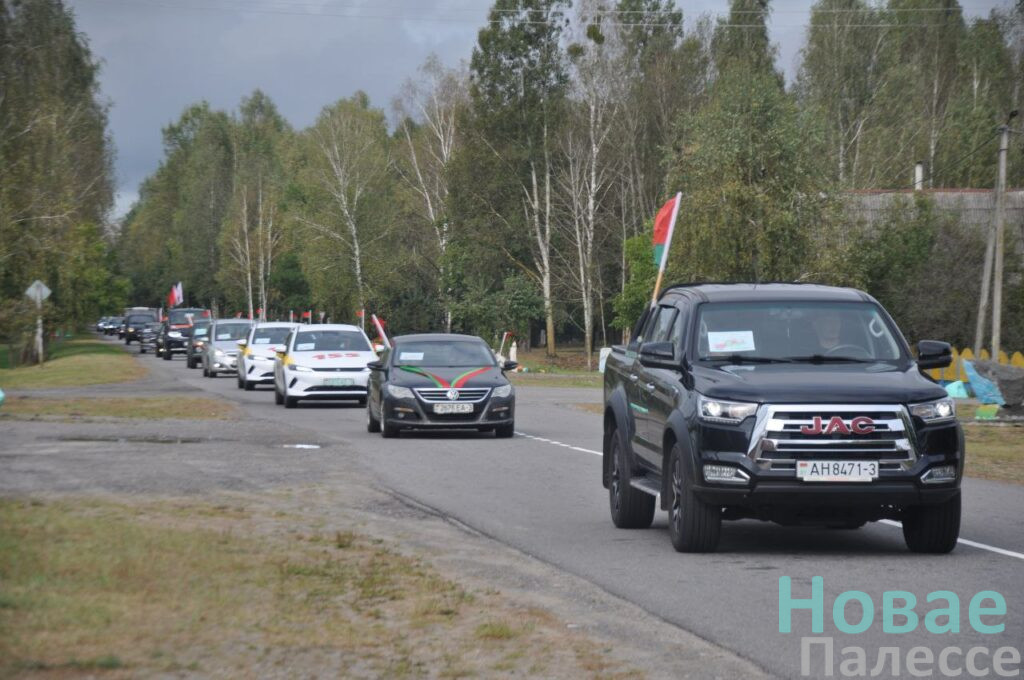 Представители трудовых коллективов и общественных организаций колонной украшенных флагами машин отправилась в агрогородок Ленин.