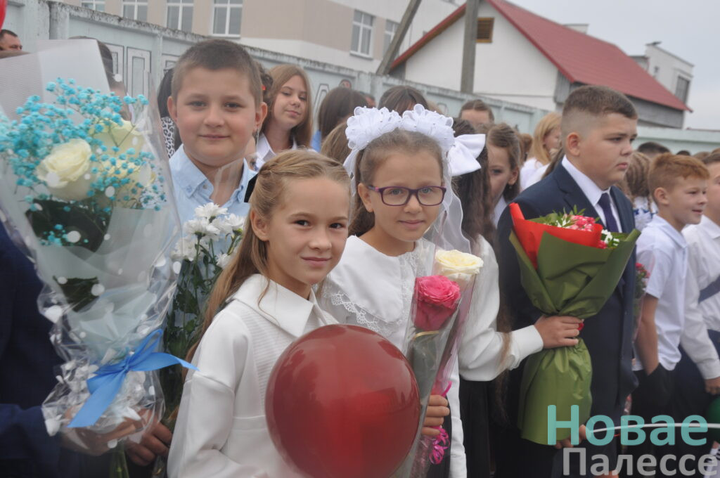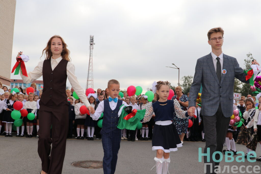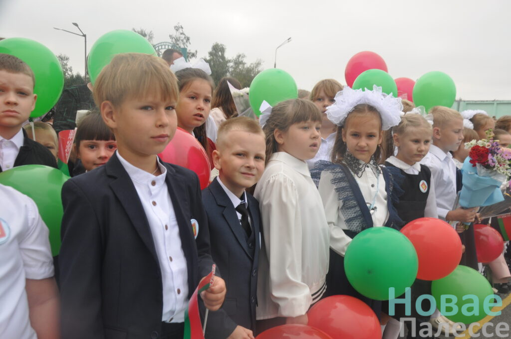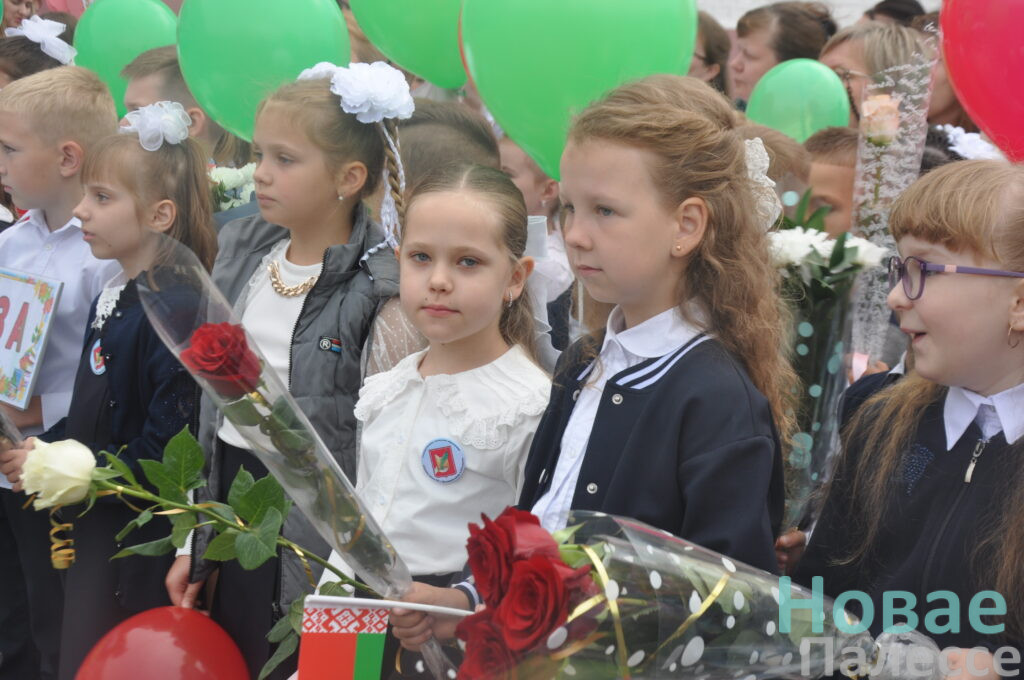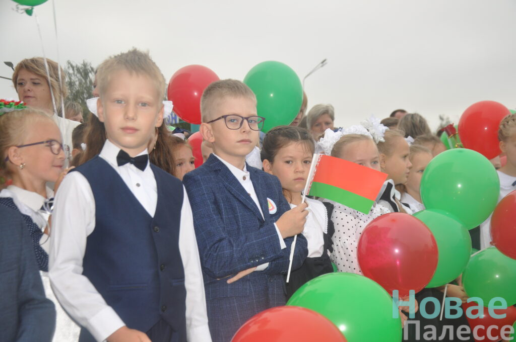 Самые юные ученики, крепко держа в руках букеты цветов, выстроились рядом со своими первыми учителями. В их глазах читались неподдельные интерес и трепет. Старшеклассники заняли свои места рядом. Под звуки торжественной музыки началась линейка и был поднят Государственный флаг Республики Беларусь.