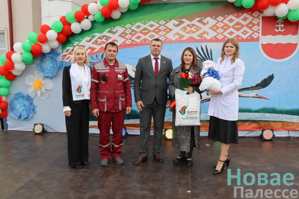 Маму Романа, ставшего самым юным жителем райцентра, Викторию Плющай поздравил председатель райисполкома Николай Пьявко.