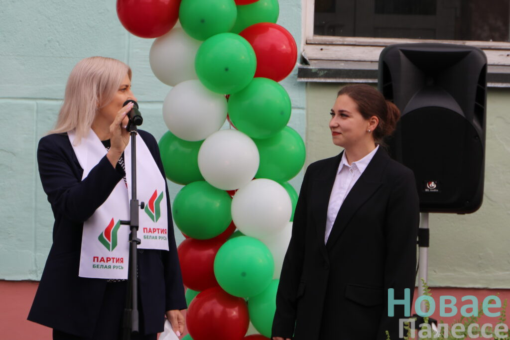 На торжественной линейке присутствовала член совета Житковичского районного отделения Белорусской партии «Белая Русь» Ирина Куприянович, которая поздравила Екатерину Лузай с началом её преподавательской деятельности в родной школе.