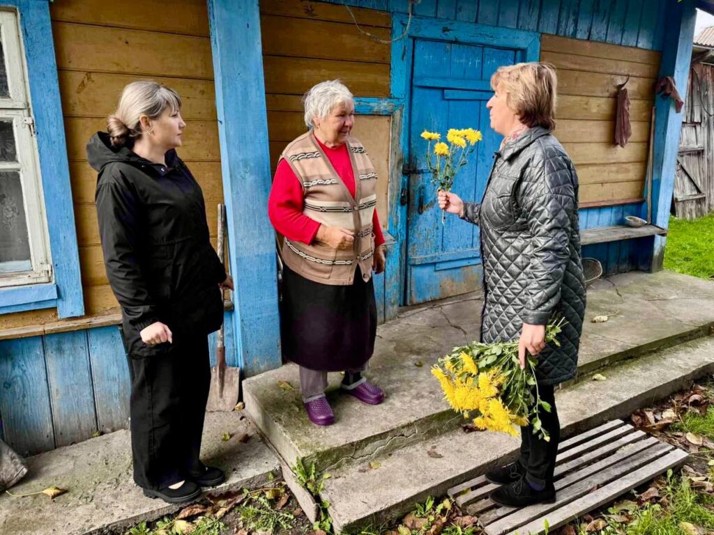 В каждом доме звучали теплые слова, пожелания здоровья и счастья, а в знак благодарности и уважения каждому дарили цветы.