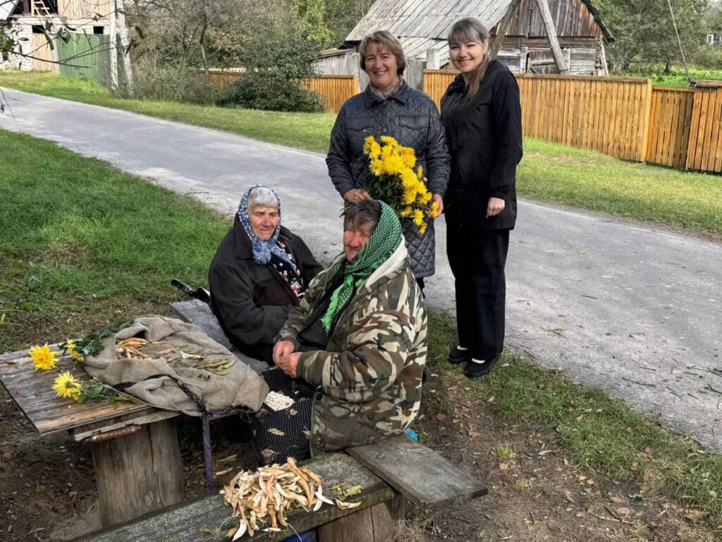 Мария Пашук и Мария Теслюк (ее в деревне все называют ласково «баба Маня») в этот день чистили фасоль, а тут и гости с красноречивыми речами и подарками. Приятно ведь. Баба Маня, к слову, много лет выступала в любительском объединении «Перароўскія шчабятушкі», а в прошлом году разменяла девятый десяток.