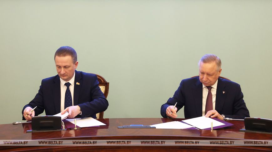 По итогам рабочего визита Александра Турчина подписаны документы, предусматривающие поставку в Санкт-Петербург белорусской продукции на 2,9 млрд российских рублей.
