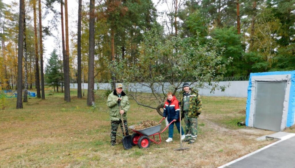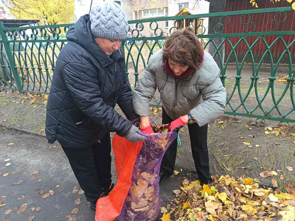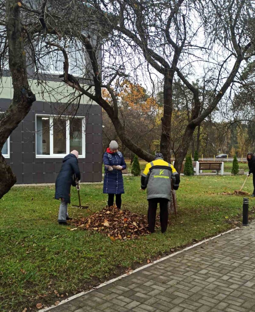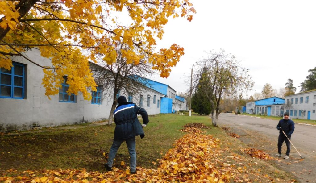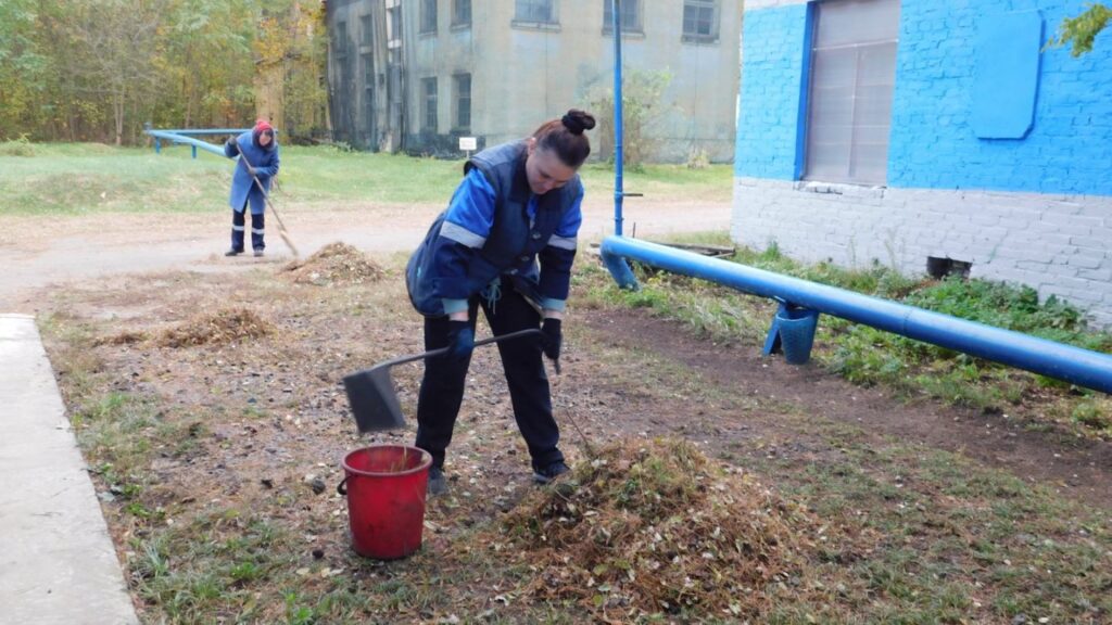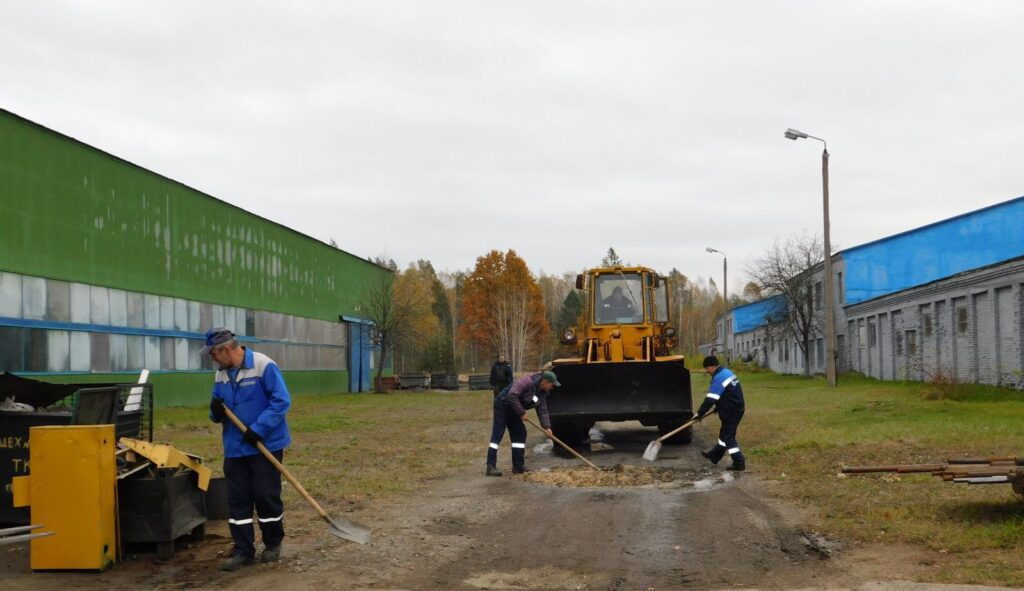 Листья на территории предприятия сгребали, мусор убирали, выбоины, оставленные транспортом, засыпали.