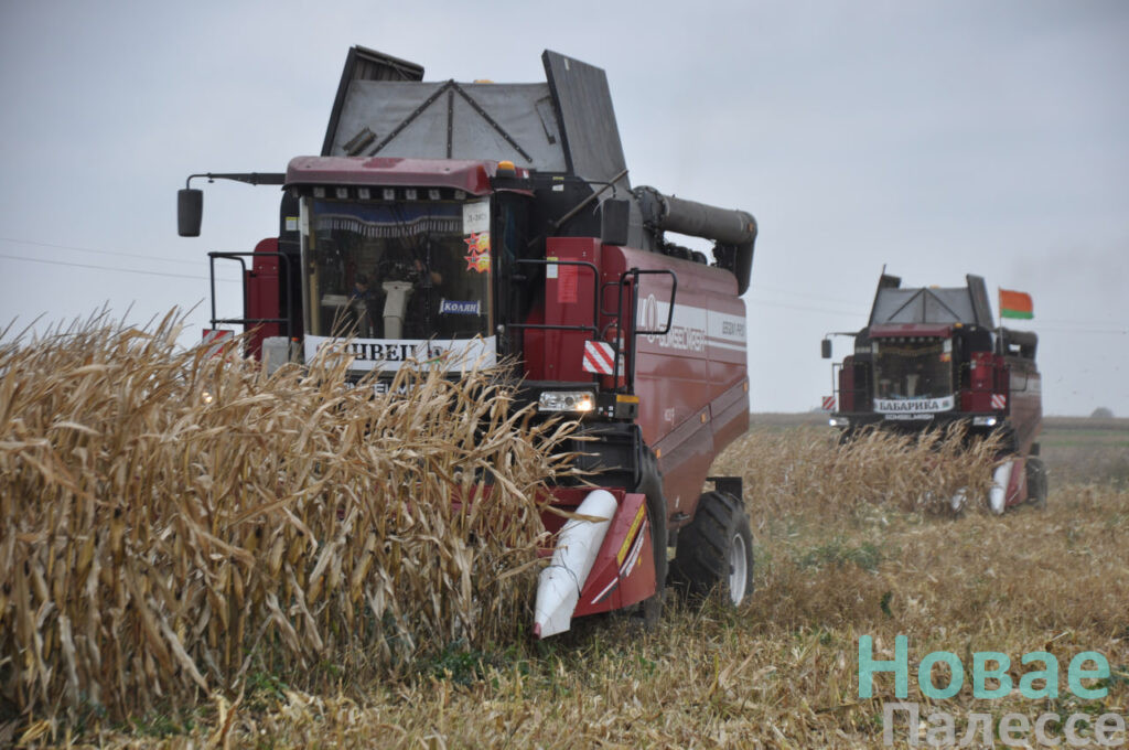 На поле возле Турова за густой стеной стеблей даже не видно комбайнов. Ими управляют одни из самых опытнейших комбайнеров, в копилке которых не одна победа на областных фестивалях-ярмарках «Дожинки». Кукуруза здесь выросла до двух с половиной метров, на каждом стебле — увесистые початки. Зерно своим цветом напоминает червлёное золото.
