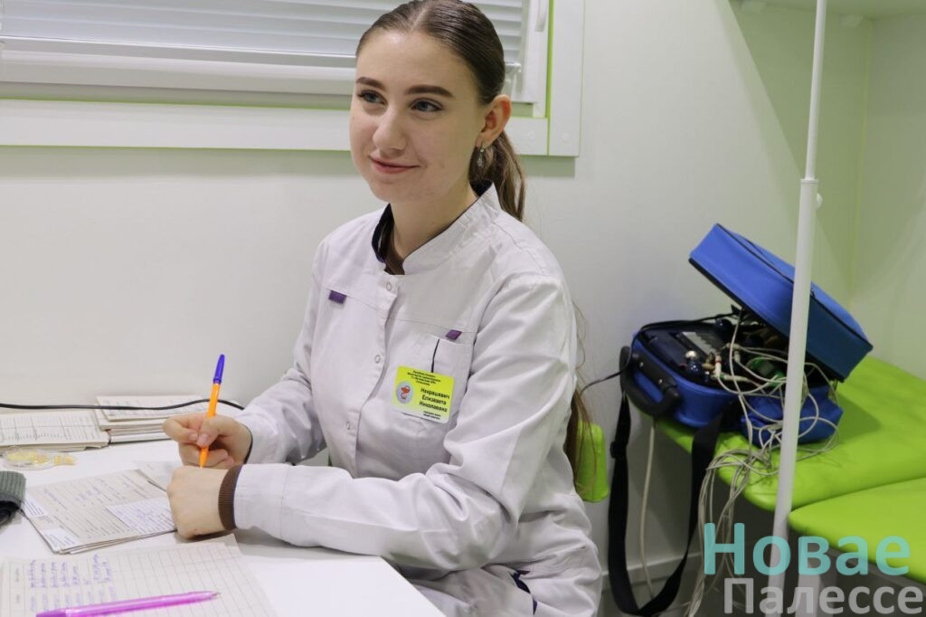 Тем временем другой помощник врача общей практики Елизавета Некрашевич снимает кардиограмму у мужчины средних лет. А в соседнем отсеке медсестра общей практики Юлия Савонова берёт у работницы из вены кровь на ряд показателей. Процесс идёт без спешки, но в то же время оперативно и слажено. Уже через 10-15 минут этих пациентов сменяет следующая пара.