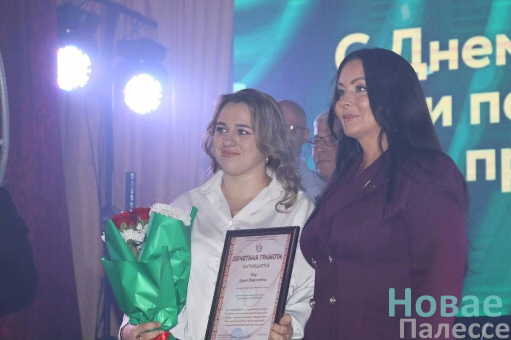 Центральным моментом дня стала церемония награждения. Аплодисментами коллег встречали победителей конкурса «Лучший по профессии». Не остались без внимания и те, кто отметил 10-летний юбилей работы на предприятии. Награду «Проверенный временем» получила ведущий инженер-микробиолог Дарья Шкут. Николай Акунец удостоен Почетной грамоты Гомельского областного исполнительного комитета, Александр Заяц — Почетной грамоты комитета по сельском хозяйству и продовольствию Гомельского областного исполнительного комитета, Дарья Цар — Почетной грамоты Управляющей компании холдинга «Гомельская мясо-молочная компания». Молодых специалистов порадовали полезными и памятными подарками.