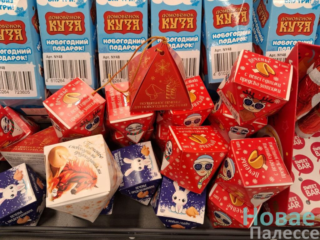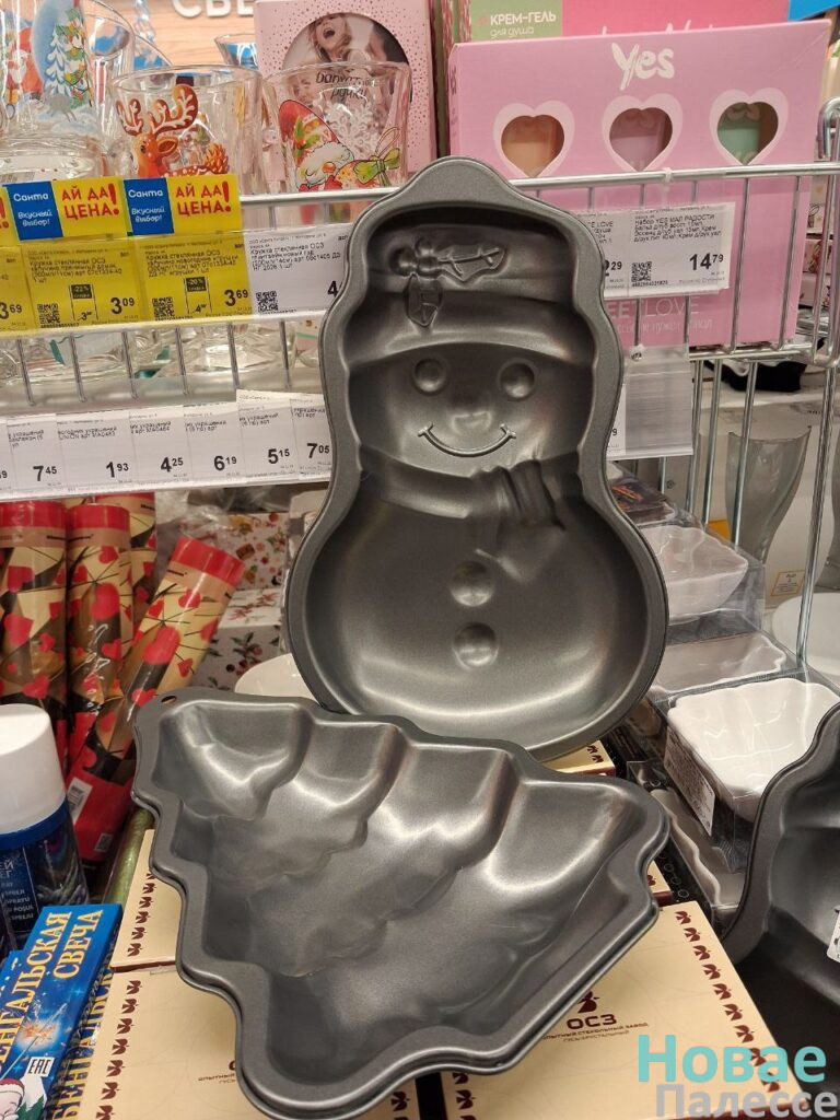 Позаботилась о том, чтобы покупатель не ушёл с пустыми руками, и «Санта». Хотя предложений здесь не много, но они есть. Забегая за продуктами, удобно прихватить какую-то красивую безделушку для декора дома или ёлки. В новогодней секции взгляд упал на волшебные печенья с предсказаниями за 2,69 и 3,69 руб., а также бенгальские огни стоимостью 2,99 руб. Хозяюшки, наверное, не отказались бы от формы для выпечки в виде снеговика и ёлочки. Такой подарок обойдётся в 11 рублей 59 копеек за штуку.
