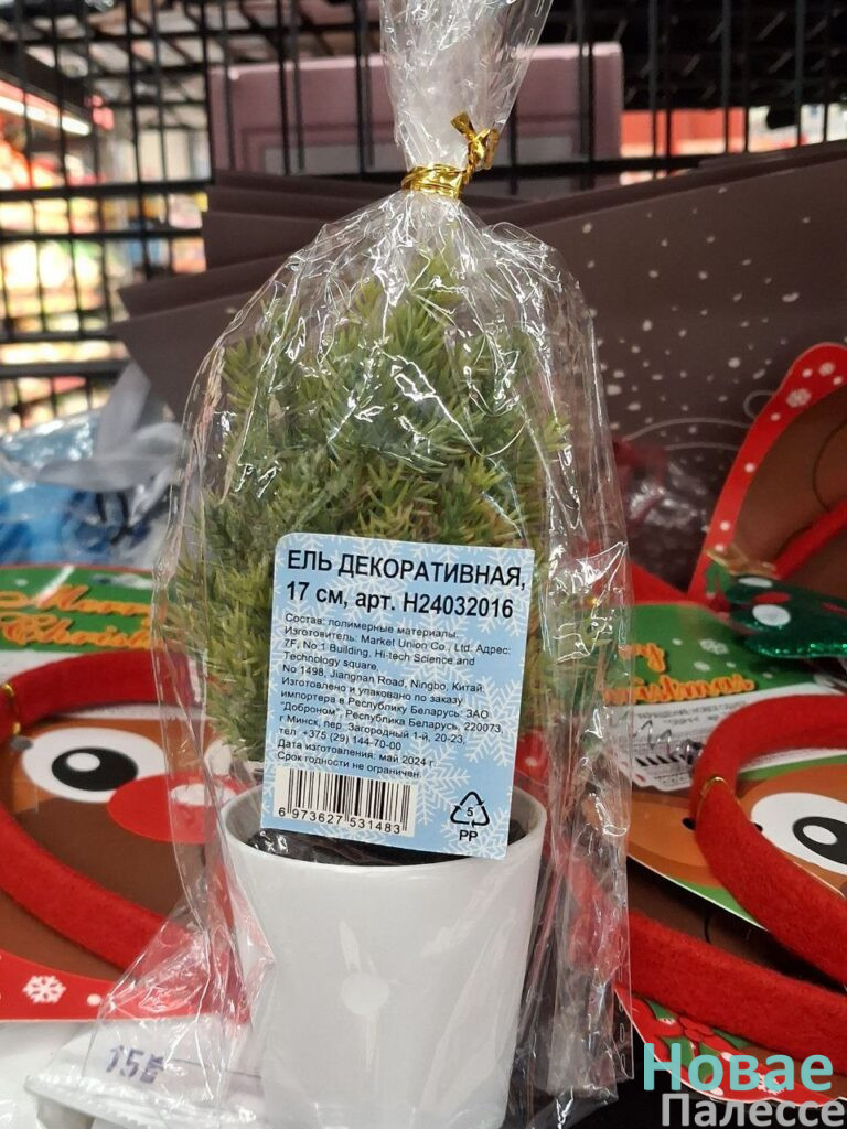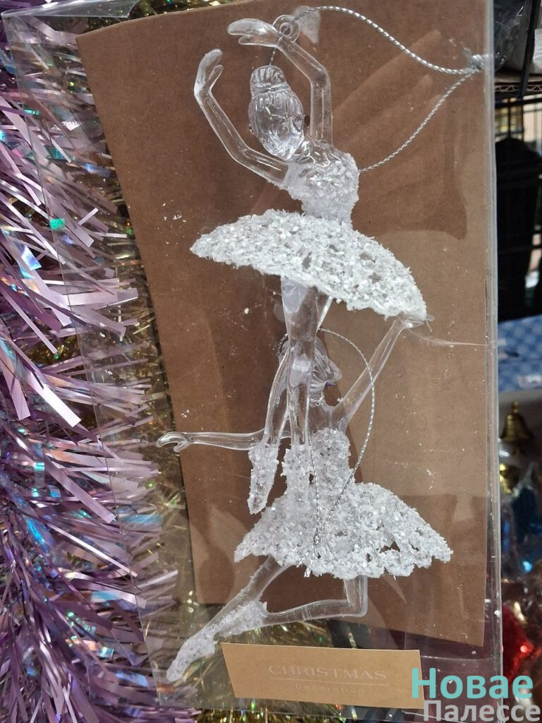 На полках «Копеечки», что на улице Фрунзе, выбор украшений и атрибутики не столь велик. К тому же из-за того, что их сгрузили навалом на два стеллажа, рассмотреть праздничный товар сложно. Но всё же чему удивиться, нашлось. Пара изящных балерин за 5,69 руб. так и просятся на ёлку. А вот 17-сантиметровая полимерная зелёная красавица в ведёрке стоит аж 14 рублей 89 копеек. Добавив к этой сумме чуть больше рубля, можно приобрести живое новогоднее деревце до двух метров ростом.