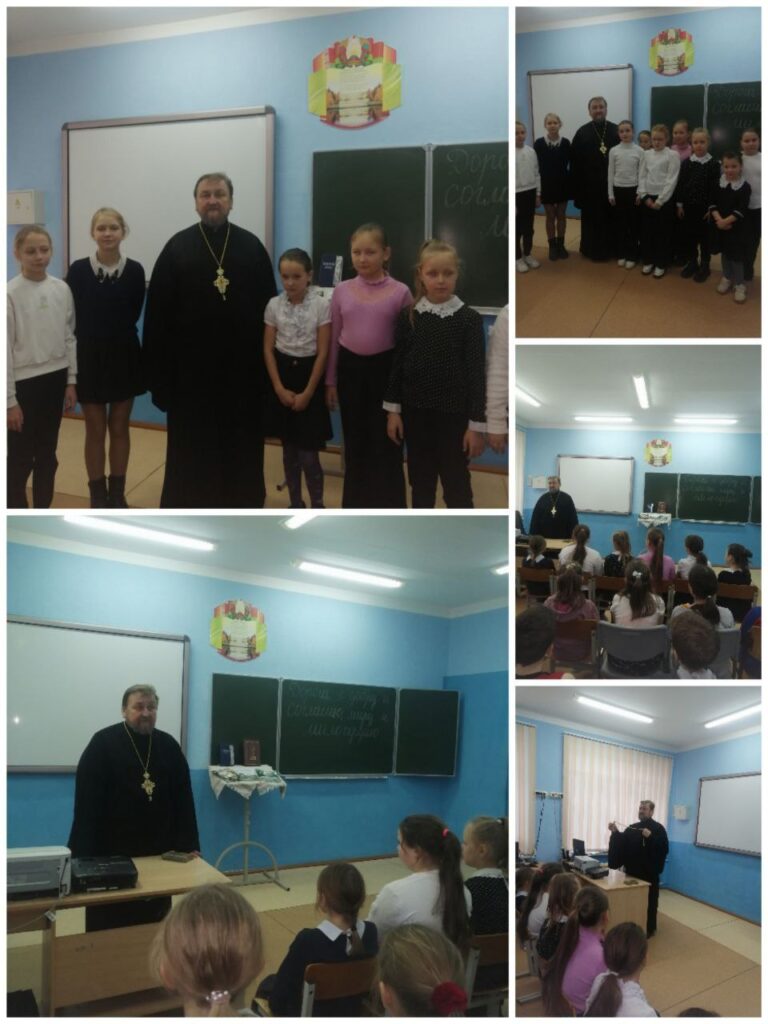 Отец Сергий провел с учащимися беседу на тему «Дорога к добру и согласию, миру и милосердию», рассказал о значении молитвы, о православном празднике Введение во храм Пресвятой Богородицы, о правилах поведения в храме.