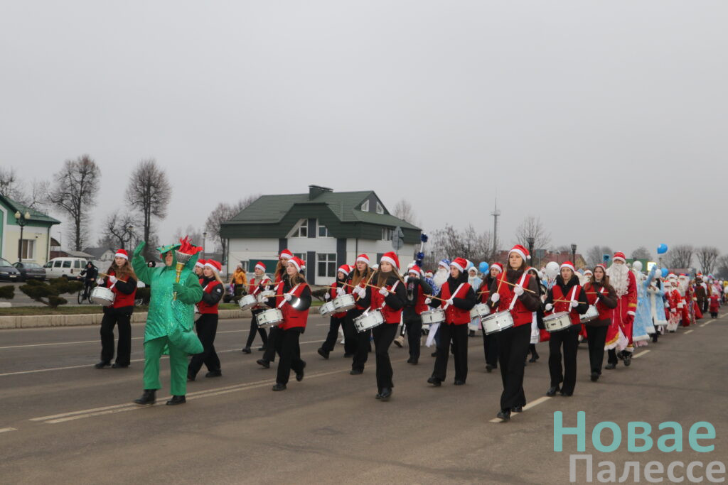 В Житковичах зажгли главную ёлку и устроили шествие Дедов Морозов
