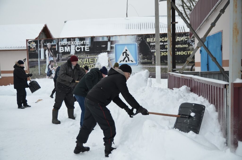 После 4 дневного снегопада для наведения порядка сотрудники Житковичского районного отдела внутренних дел дружно вышли на субботник. Его целью была очистка от снега и наледи территорий, прилегающих к служебным зданиям, а также помощь подшефному учреждению.