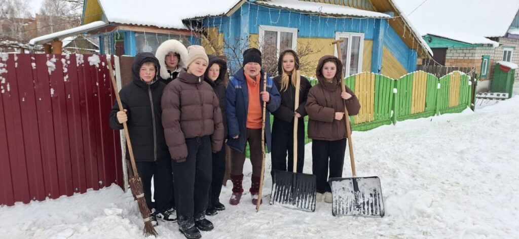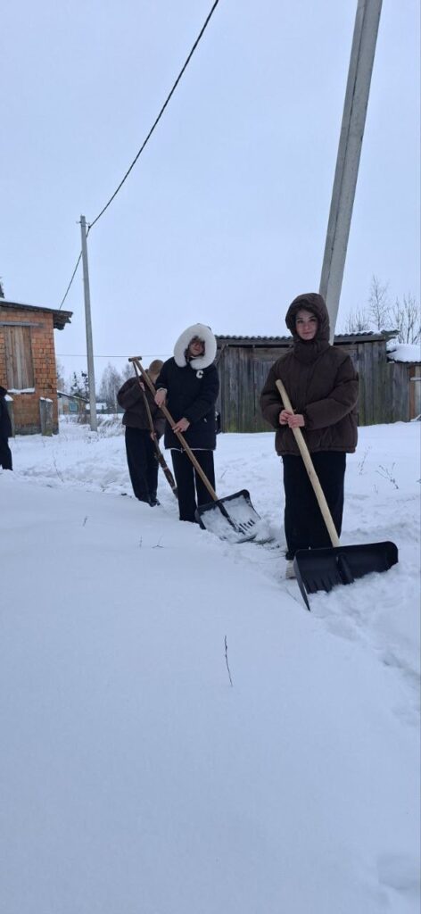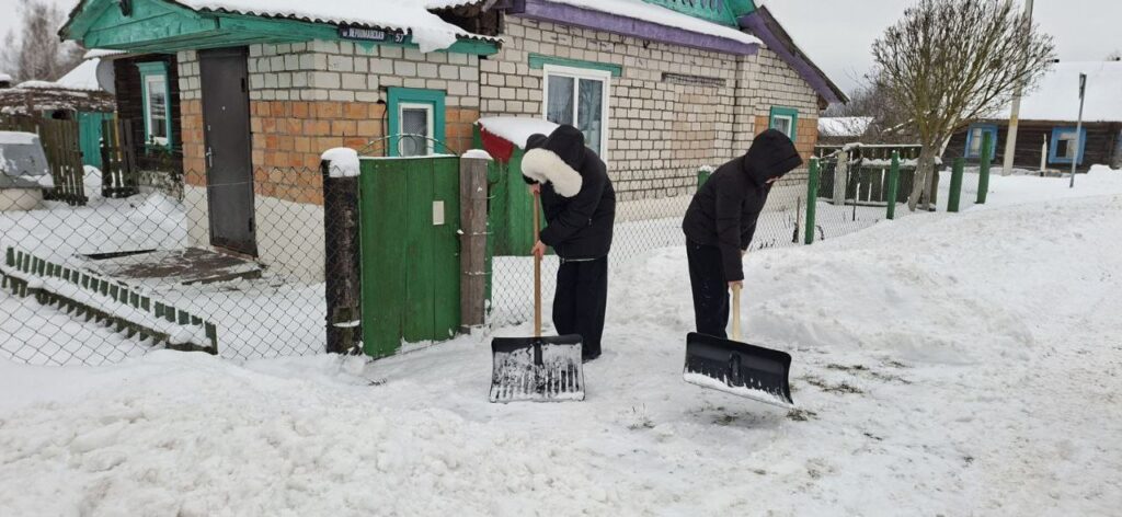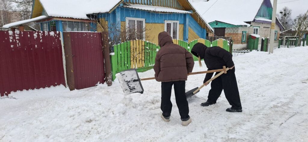 За дело и лопаты взялись ребята из Пуховичской базовой школы, чтобы помочь в уборке снега ветеранам труда