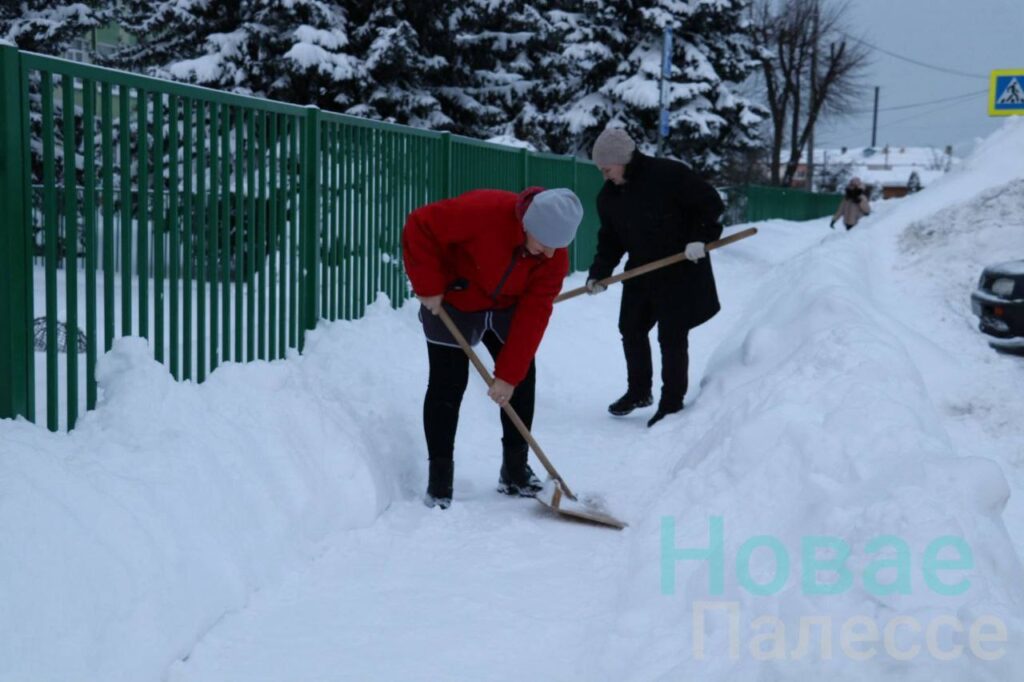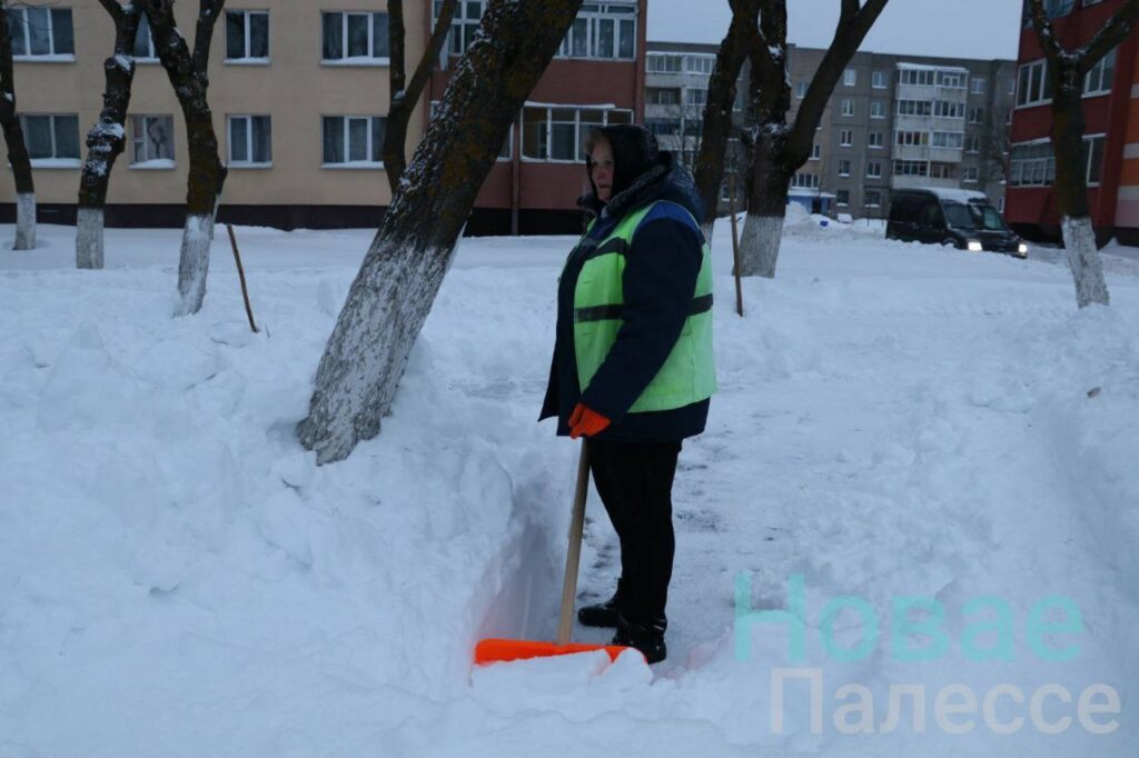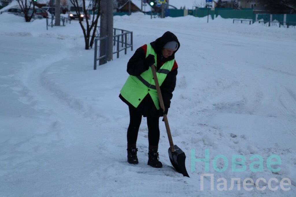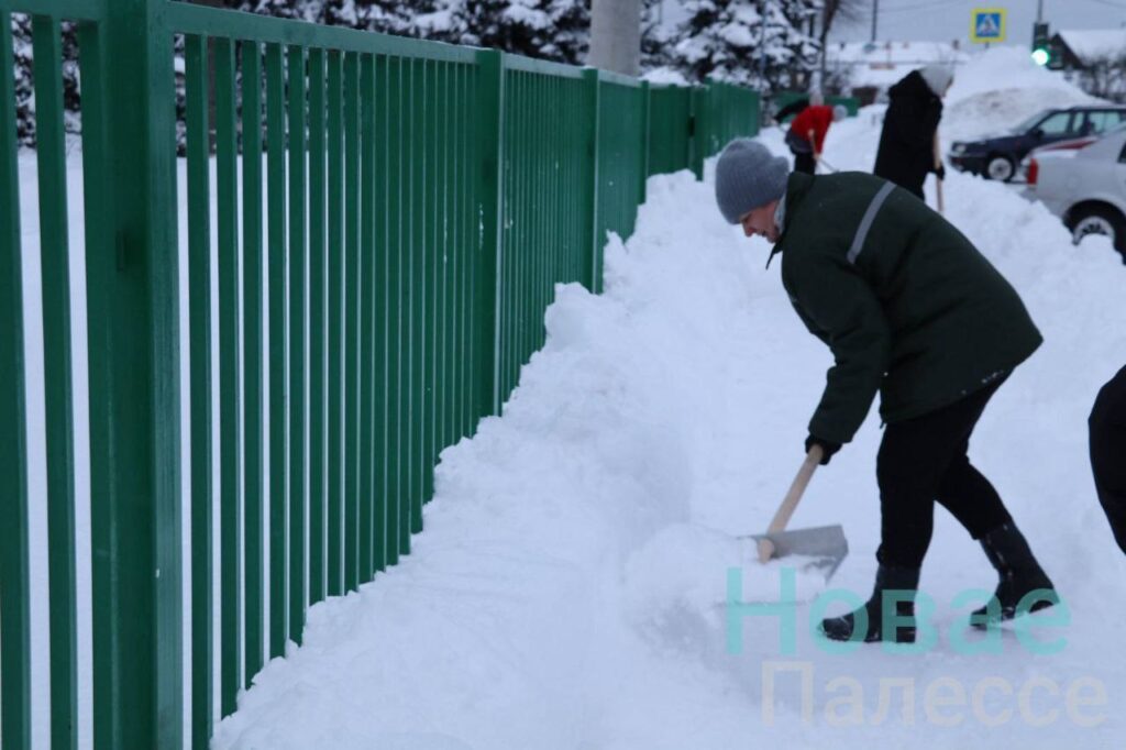 Жители райцентра с работниками КУП «Житковичский коммунальник» освобождают из снежного плена автобусные остановки и проезды-проходы к школьным дворам.