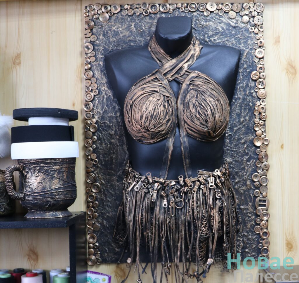 Застенчивый гном и брутально-добродушный снеговик, элегантный манекен в «золотом» белье, а рядом картина в стиле Пикассо, напоминающая чеканку.