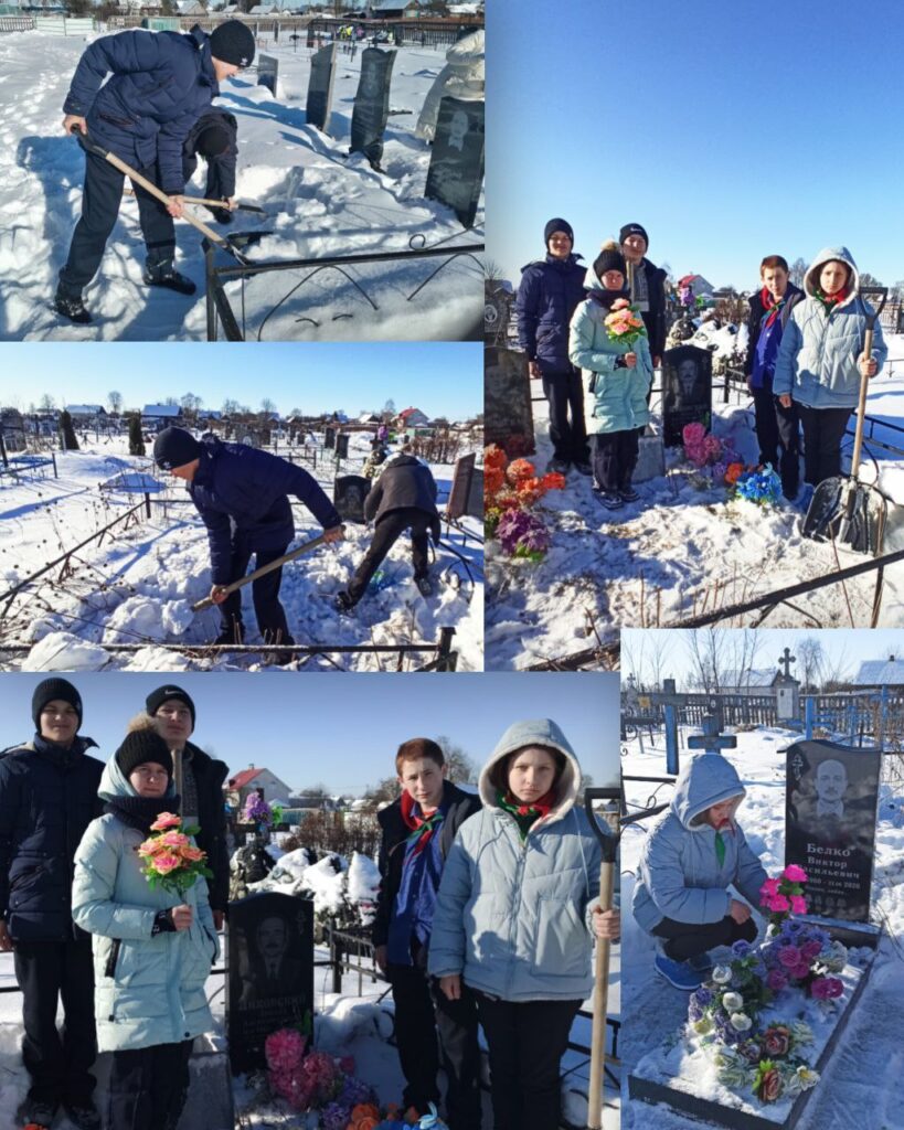 Накануне Дня памяти воинов-интернационалистов, активисты БРСМ и пионерской дружины имени Николая Кедышко ГУО «Малешевская базовая школа» провели уборку снега мест захоронения участников Афганской войны.