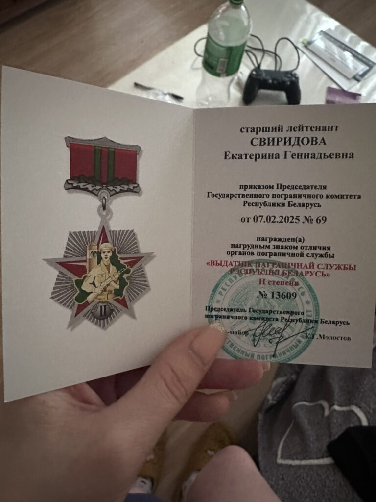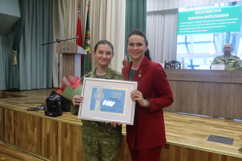 Наша землячка служит в группе Гомельского погранотряда в звании капитана. Здесь же охраняет рубежи и ее супруг майор Владислав Свиридов.