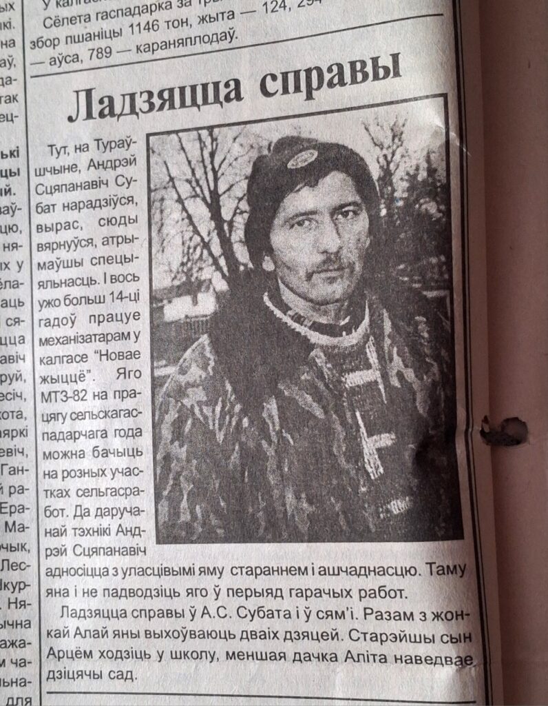 А тую невялікую заметку з фатаграфіяй 24-гадовай даўнасці наш герой не памятае, хаця газету, прызнаецца, сям’я выпісвае рэгулярна. Дарэчы, пра сям’ю. Тут нас таксама чакаў сюрпрыз. Запытаўшы, як справы на асабістым фронце, пачулі, што мужчыну і з гэтым напаткалі вялікія змены. Андрэй Сцяпанавіч другі раз ажаніўся. Яго спадарожніца жыцця працуе сацыяльным работнікам. У пары нарадзіўся сын. Але герой публікацыі падтрымлівае роднасныя сувязі і са старэйшымі дзецьмі. Дачка і абодва сыны ўжо пабраліся шлюбам і пусцілі трывалыя карані на Тураўшчыне, а бацьку зрабілі шасціразовым дзедам.