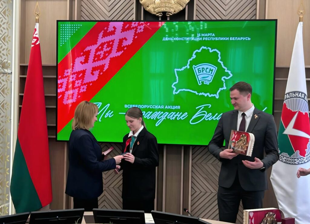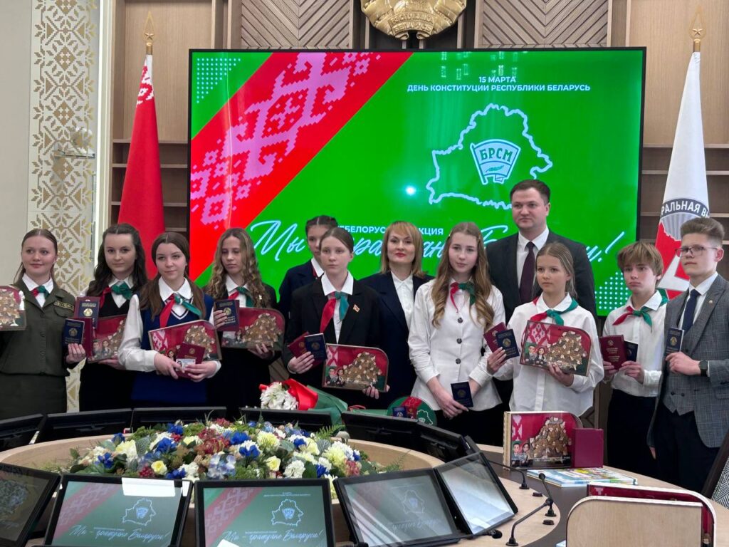 На мероприятие по случаю Всебелорусской акции «Мы — граждане Беларуси!» в Минск пригласили 10 лучших ребят со всей страны. Свой главный документ молодежь получила из рук секретаря ЦИК Елены Балдовской.