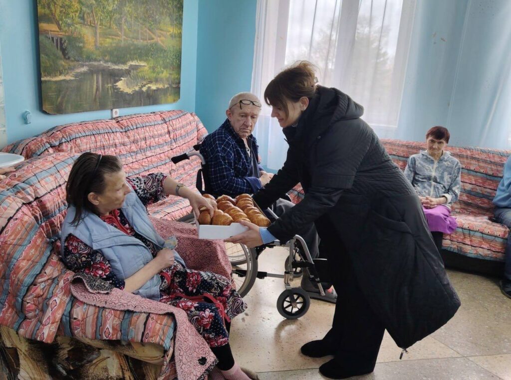 В отделении сестринского ухода, как и просили медики, появились необходимые гигиенические средства и тёплые вещи. А детям из подопечных семей передали сладости. Для всех приготовили сыры собственного производства и выпечку из кафе Bonfesto.