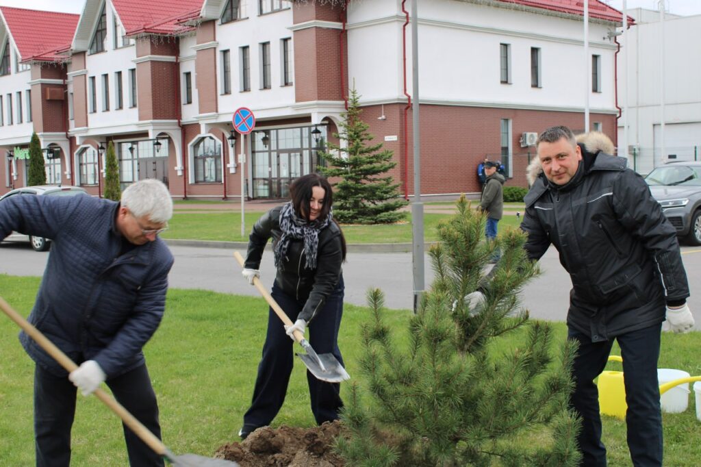 Коллектив Туровского молочного комбината принял активное участие в республиканском субботнике. Дружная команда во главе с директором предприятия, депутатом Гомельского областного Совета депутатов Ольгой Луцко высадила молодые кедры перед административно-бытовым комплексом.