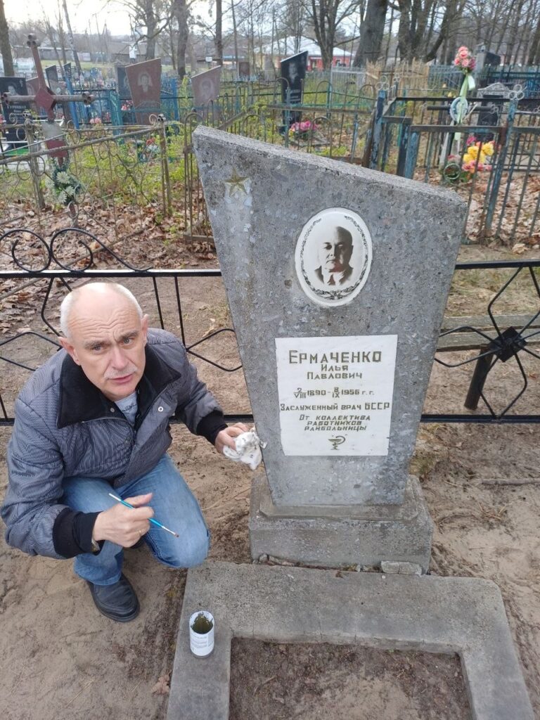 Для неравнодушных людей не существует плохой погоды или нехватки времени. В этот раз работа закипела на месте упокоения врача — медики убрали листву, ограда вокруг могилы засияла новыми красками, а главное — были обновлены надписи на памятниках.